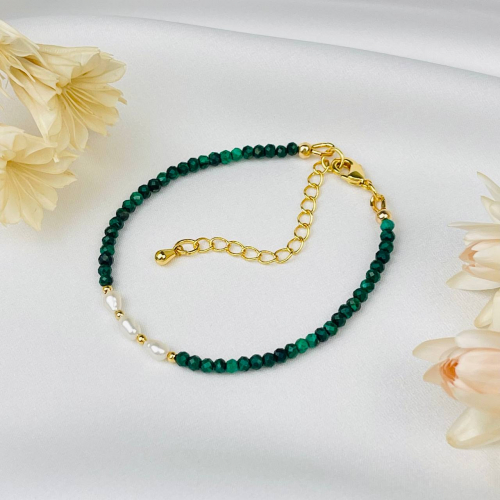 Радуга Самоцветов Браслет из Малахита и Жемчуга