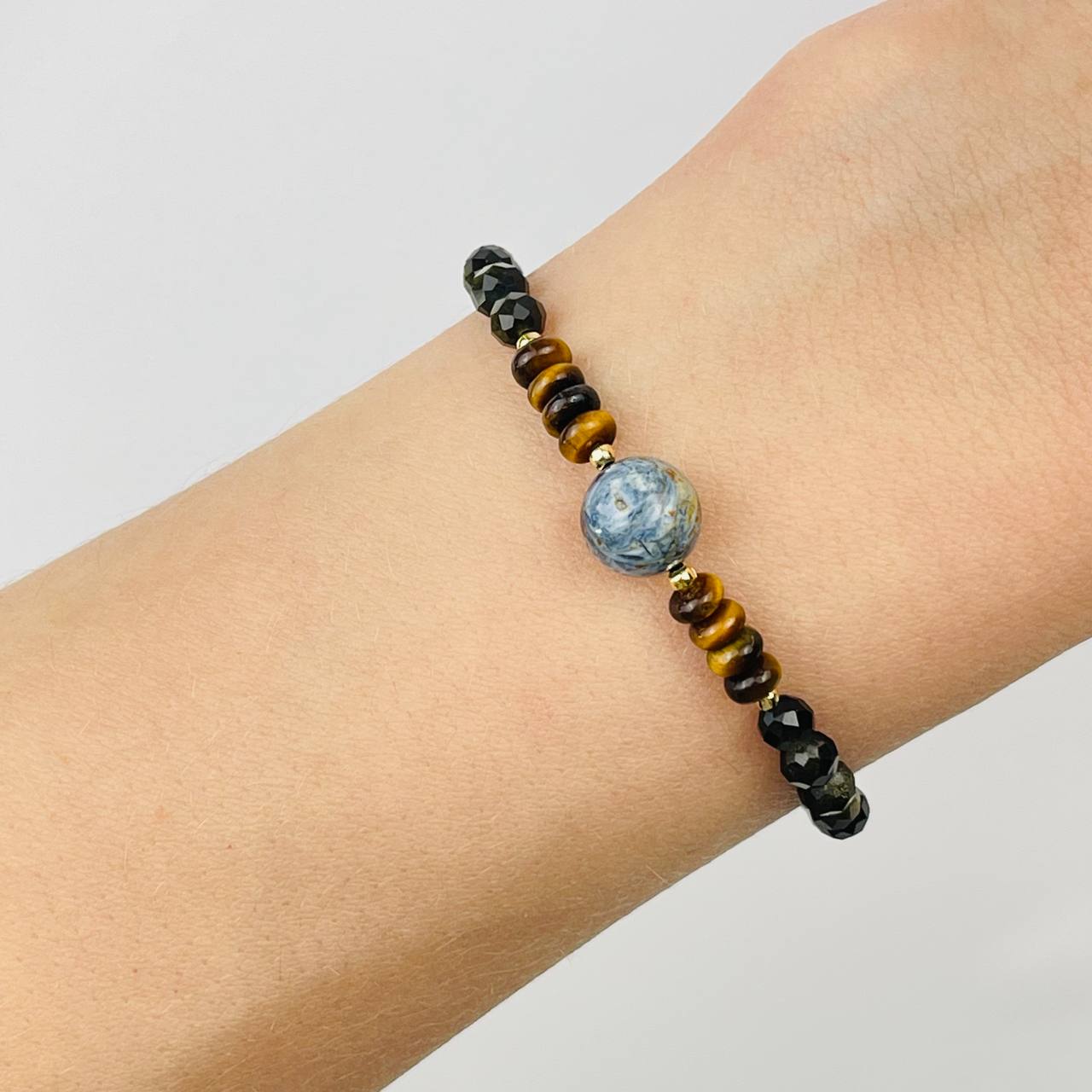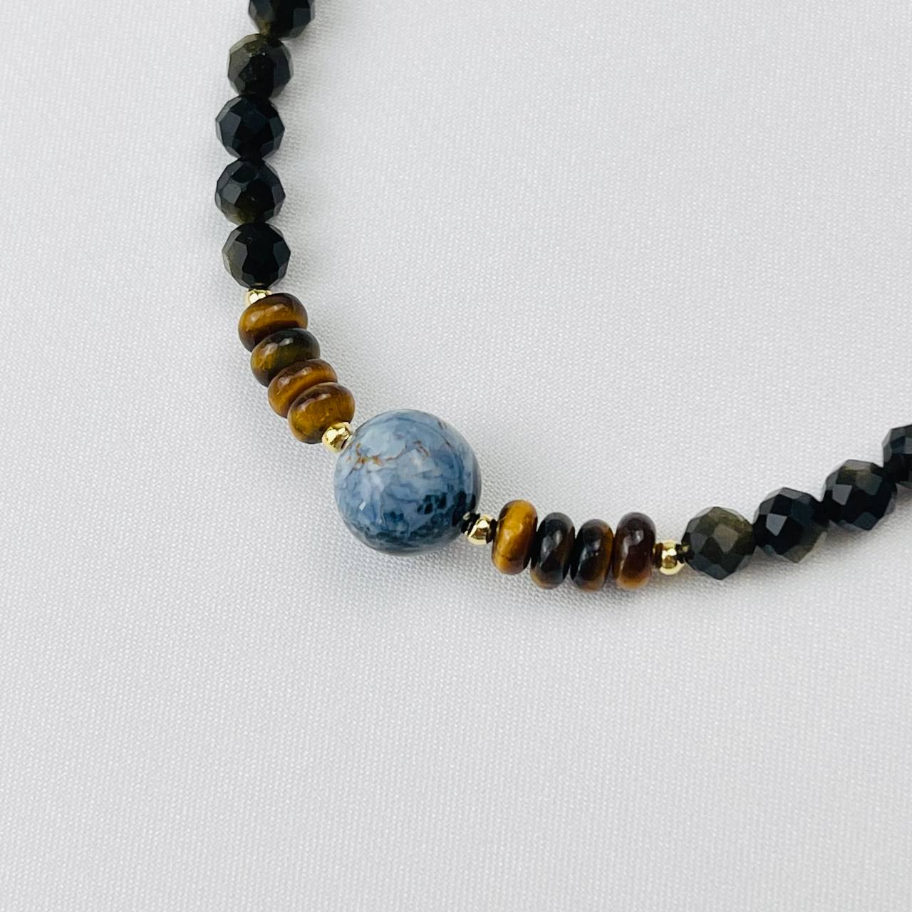 Радуга Самоцветов Браслет из Обсидиана, Тигрового глаза и Петерсита