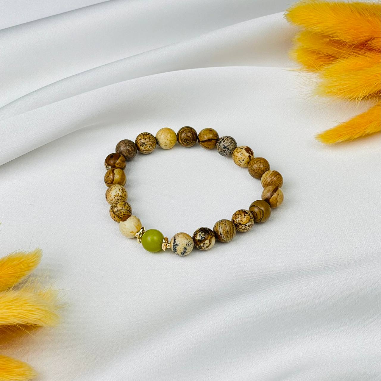Радуга Самоцветов Браслет из песочной Яшмы и Змеевика