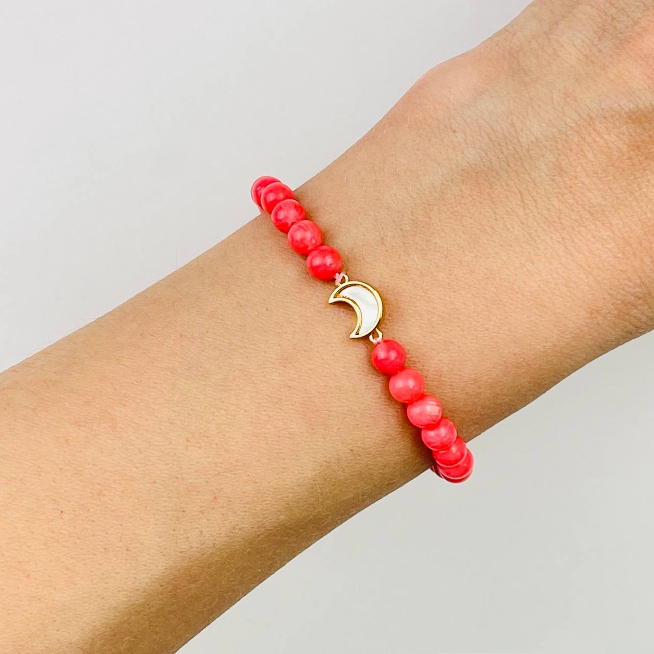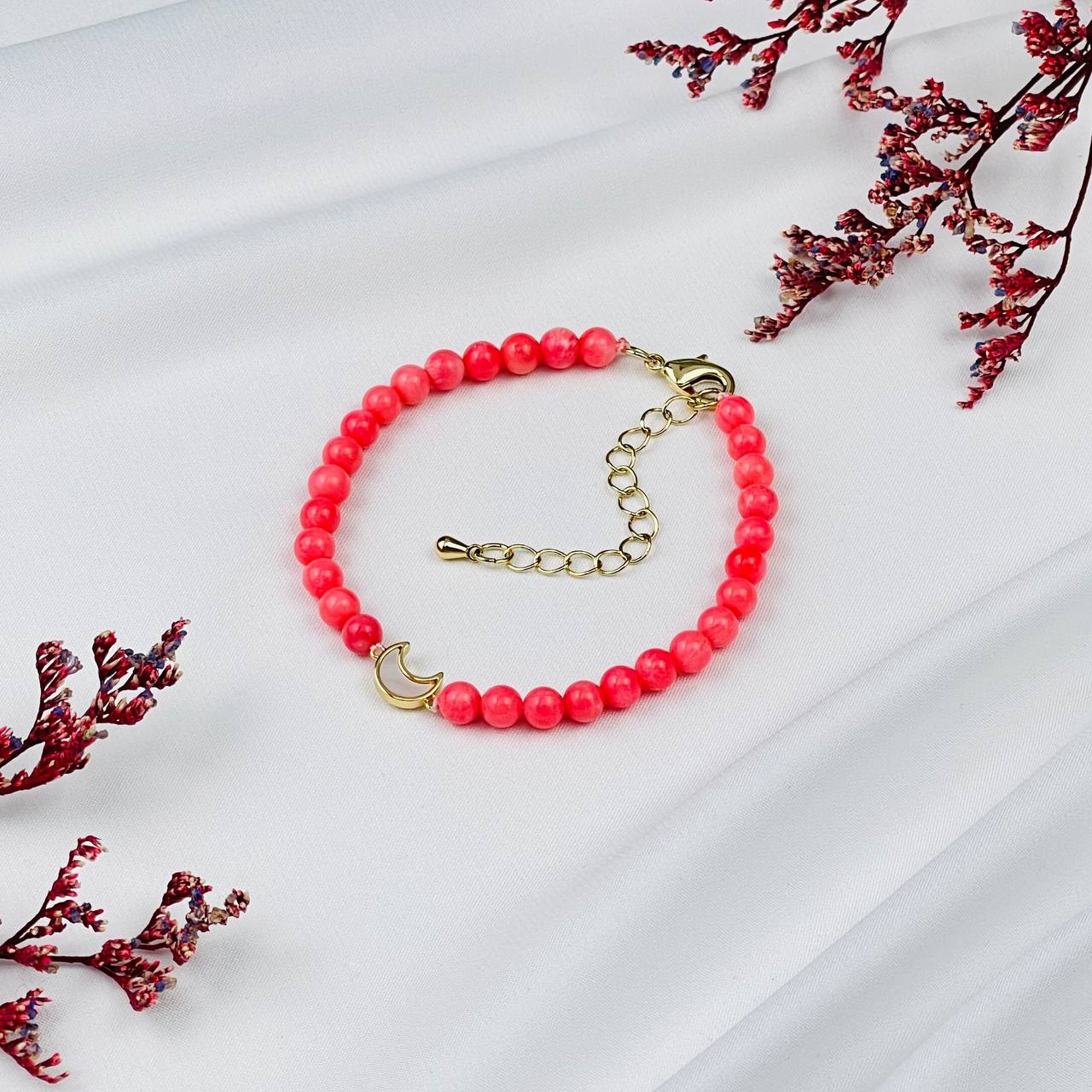 Радуга Самоцветов Браслет из розового Коралла со вставкой месяц