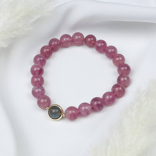 Радуга Самоцветов Браслет из Розового кварца, Ангелита,Кунцита и Амазонита