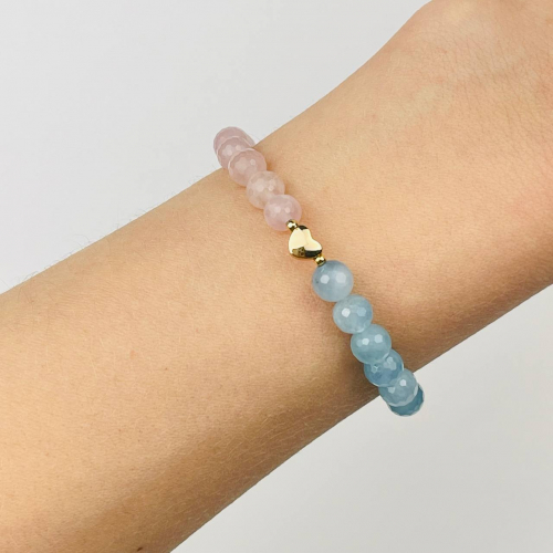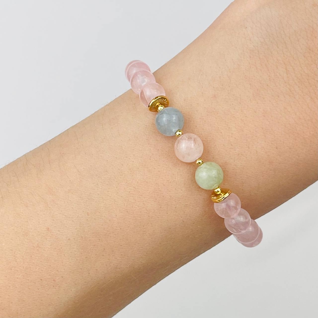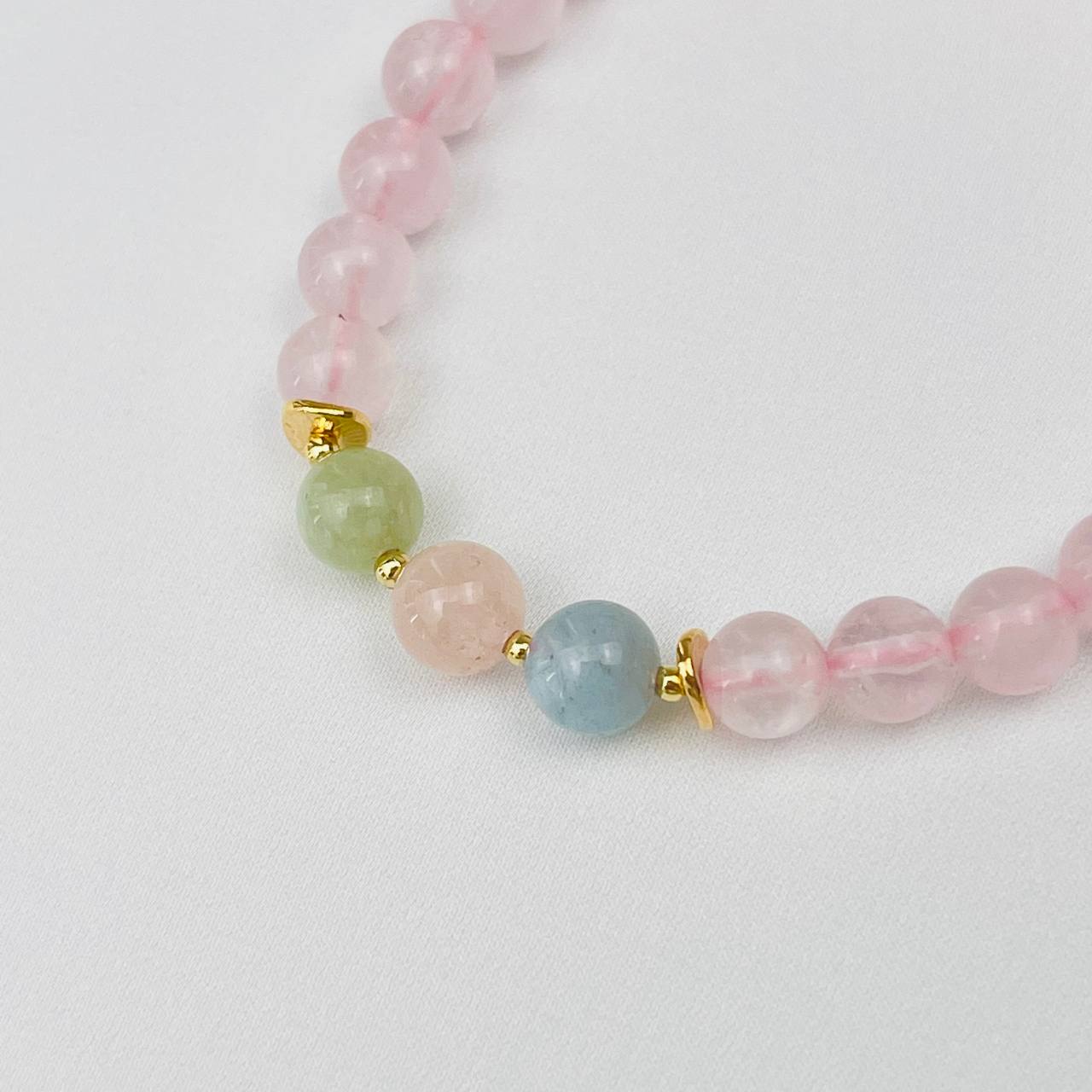 Радуга Самоцветов Браслет из Розового кварца и Берилла микс
