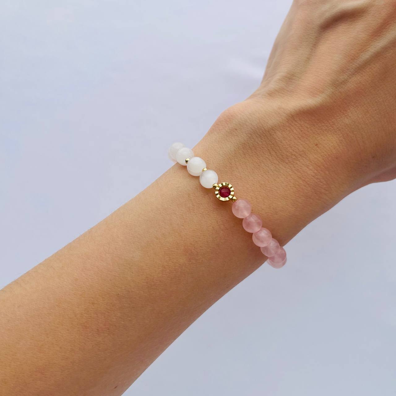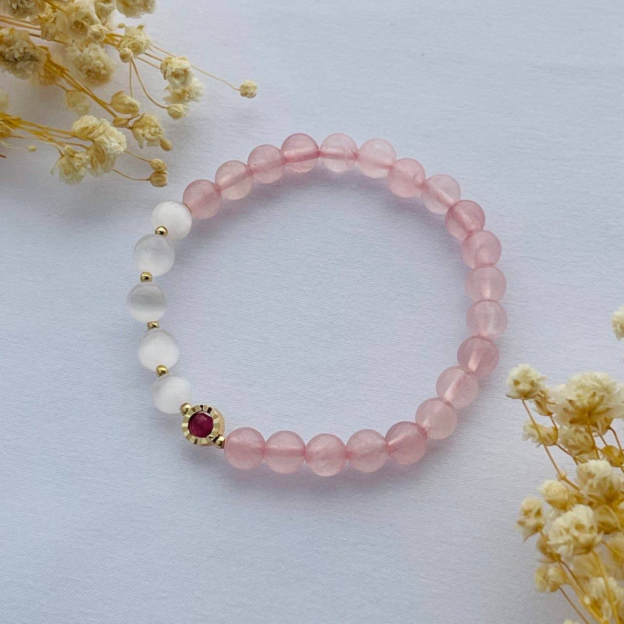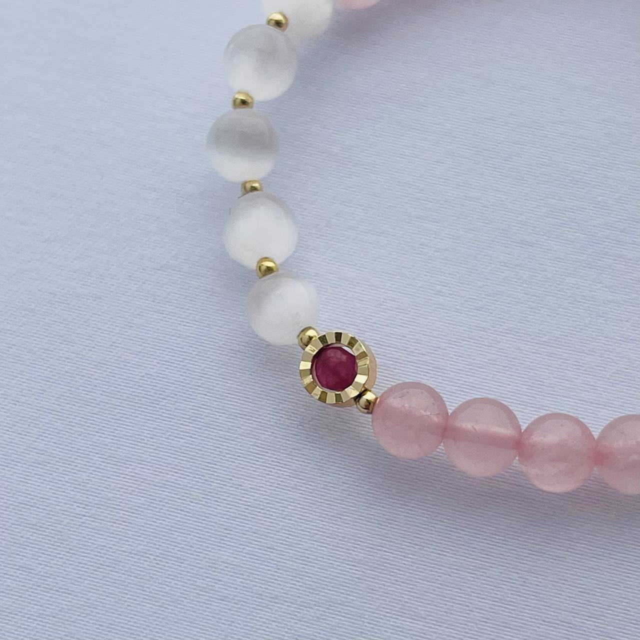 Радуга Самоцветов Браслет из Розового кварца, Селенита и Турмалина