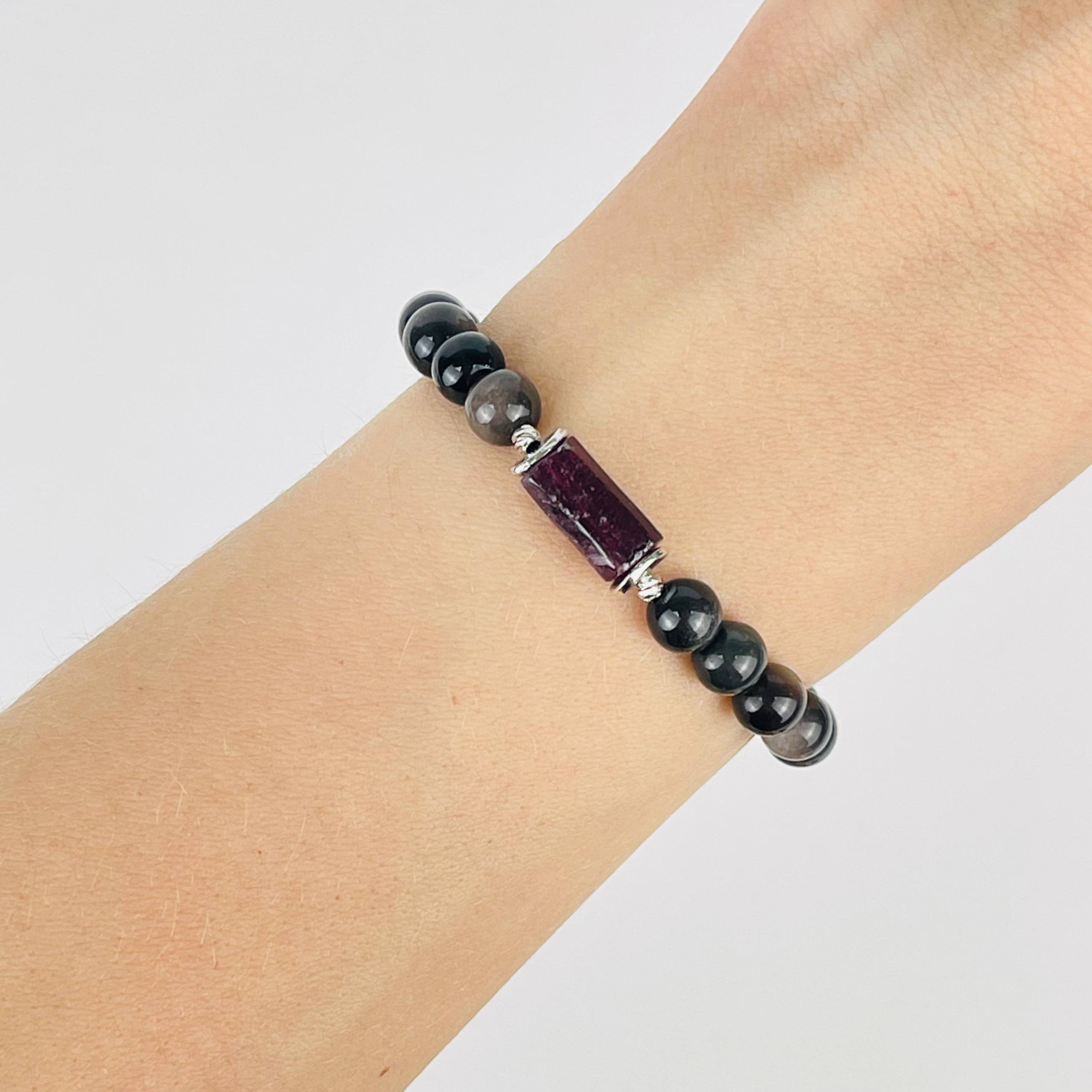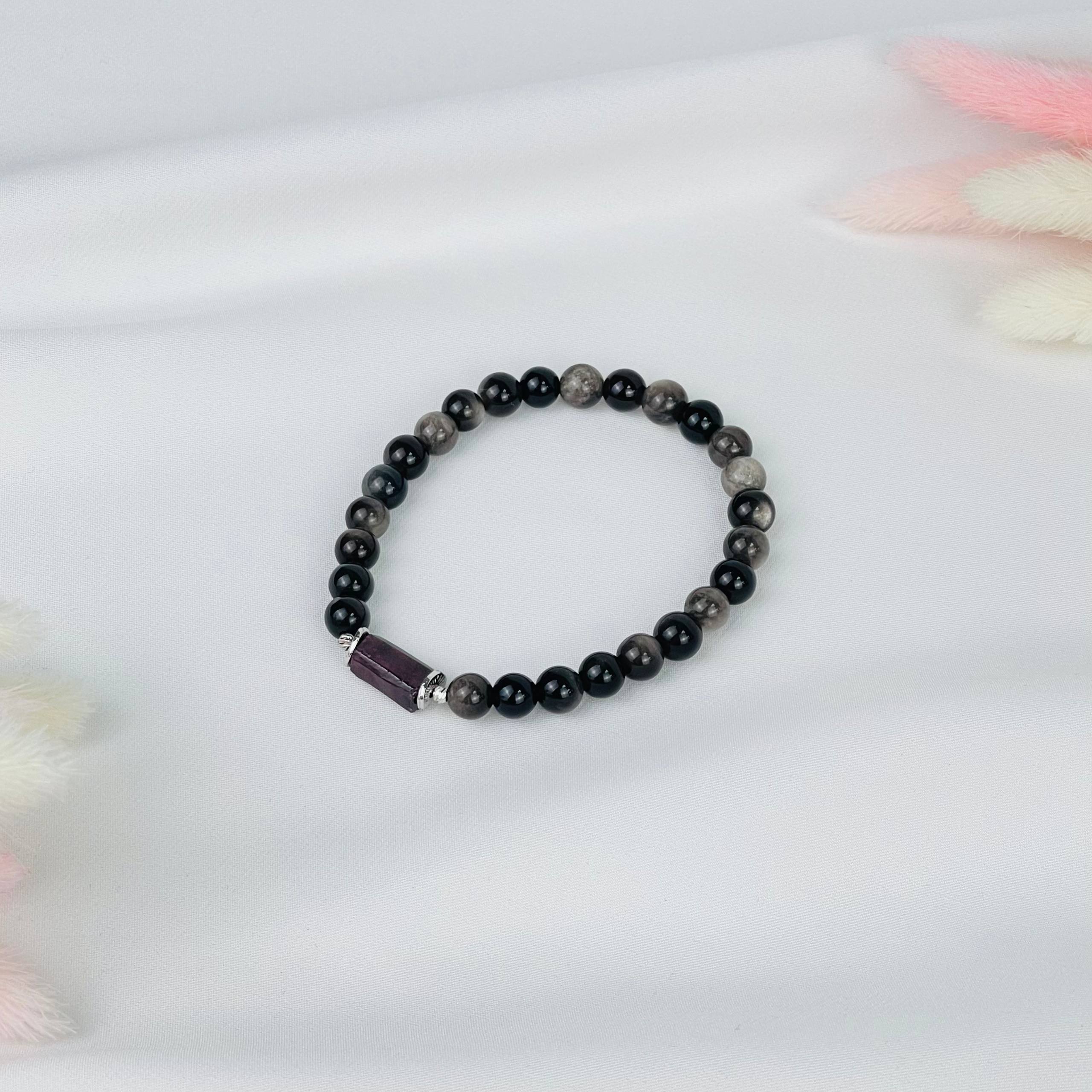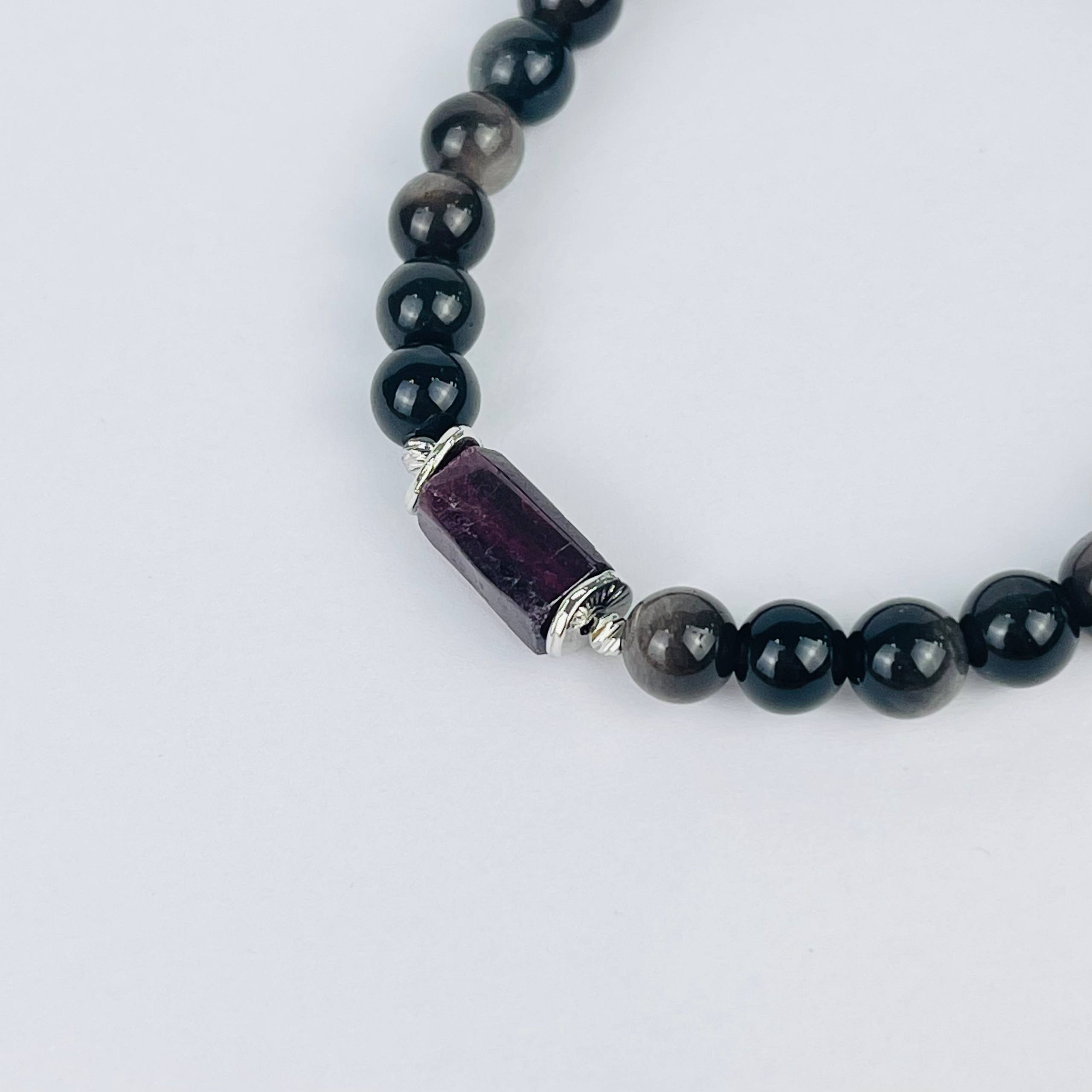 Радуга Самоцветов Браслет из серебристого Обсидиана и Граната
