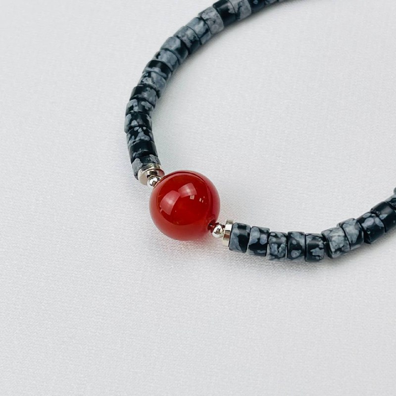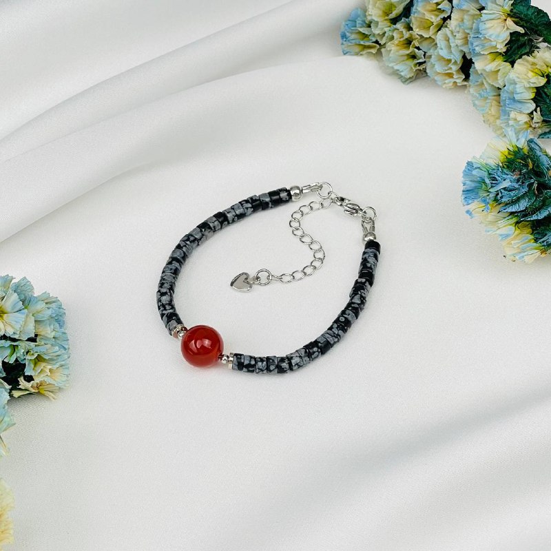Радуга Самоцветов Браслет из снежного Обсидиана и Сердолика