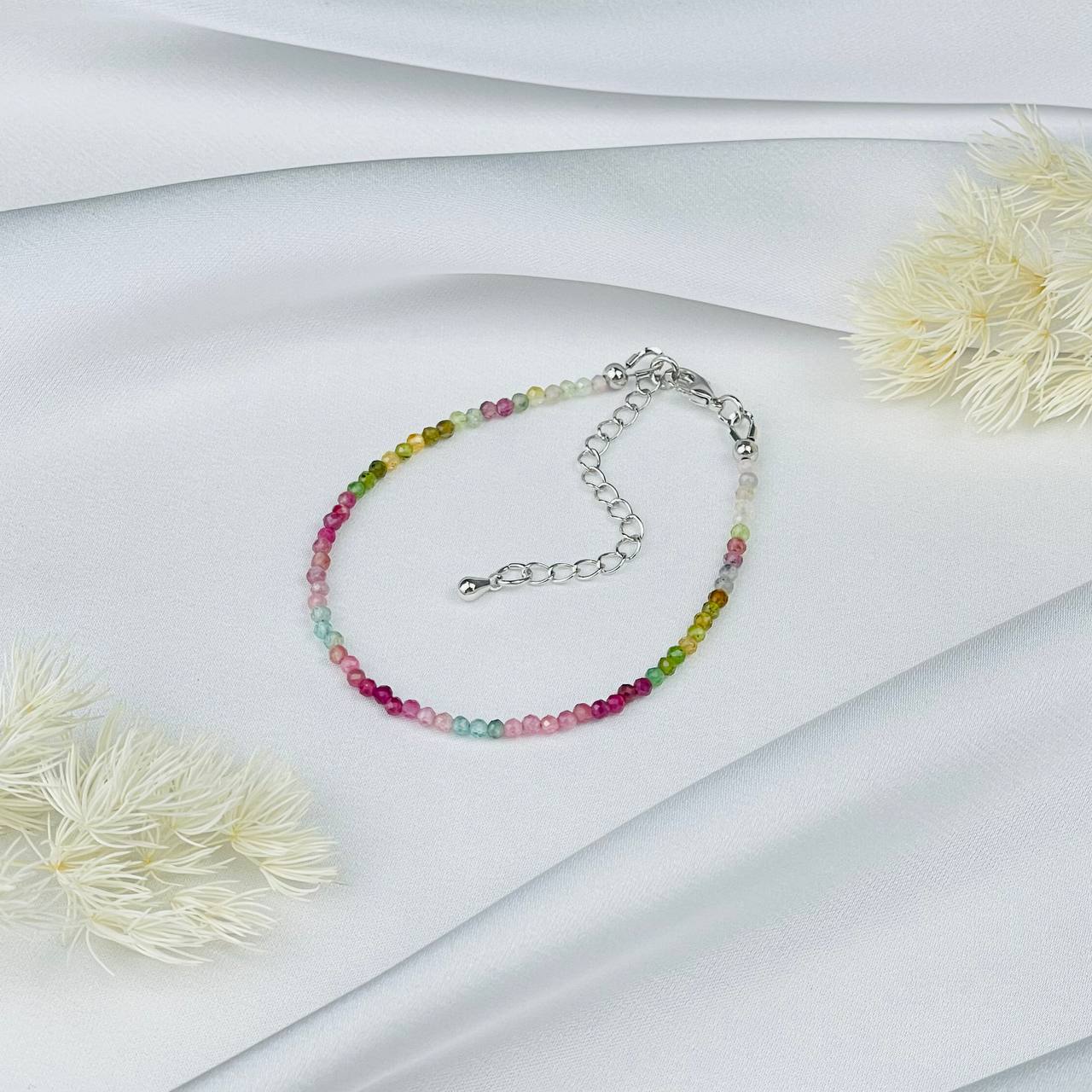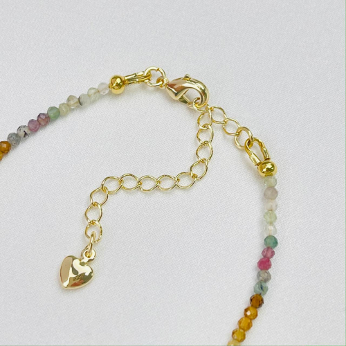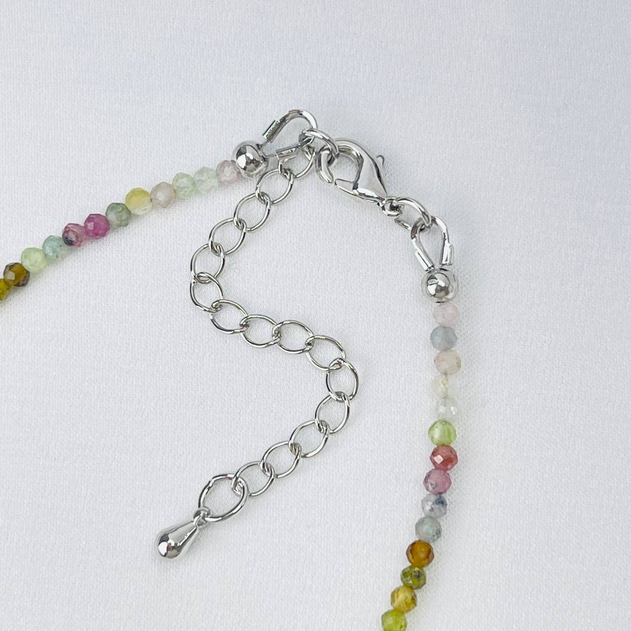 Цвет камня: Миксовый Месторождени..показатье: Бразилия Камень: Турмалин Покрытие: Бижутерный сплав Диаметр: 2 мм Поверхность: Граненый Производитель: Радуга Самоцветов (Россия) Тип замка: Карабин с цепочкойе: Бразилия
