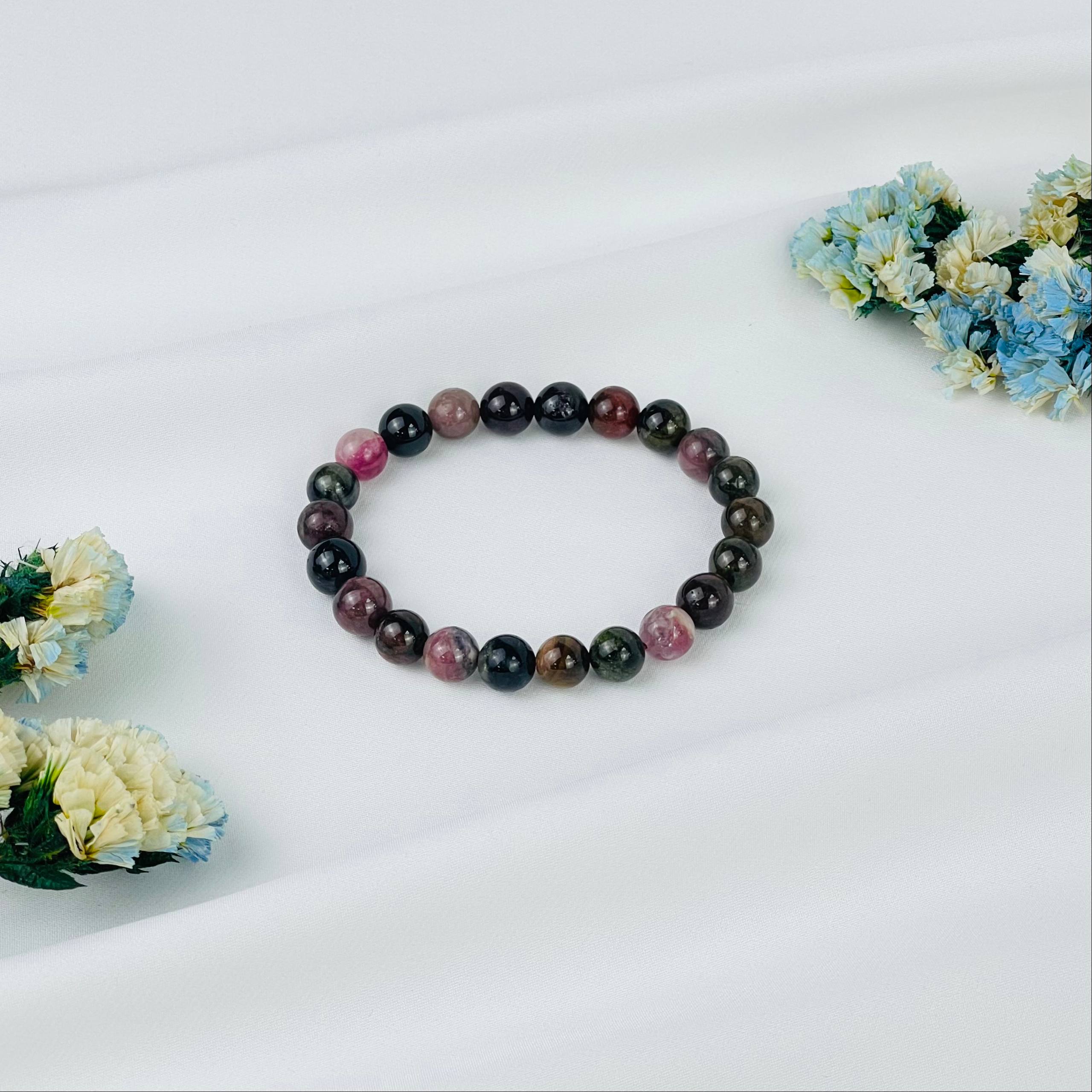 Цвет камня: Миксовый Месторождени..показатье: Бразилия Камень: Турмалин Диаметр: 8 мм Поверхность: Гладкий Производитель: Радуга Самоцветов (Россия) Тип замка: Резинкае: Бразилия