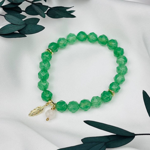 Радуга Самоцветов Браслет из зеленого Кварца с подвеской "Перо"