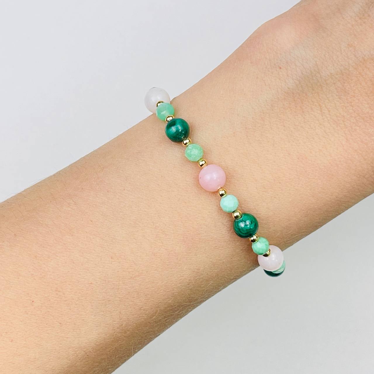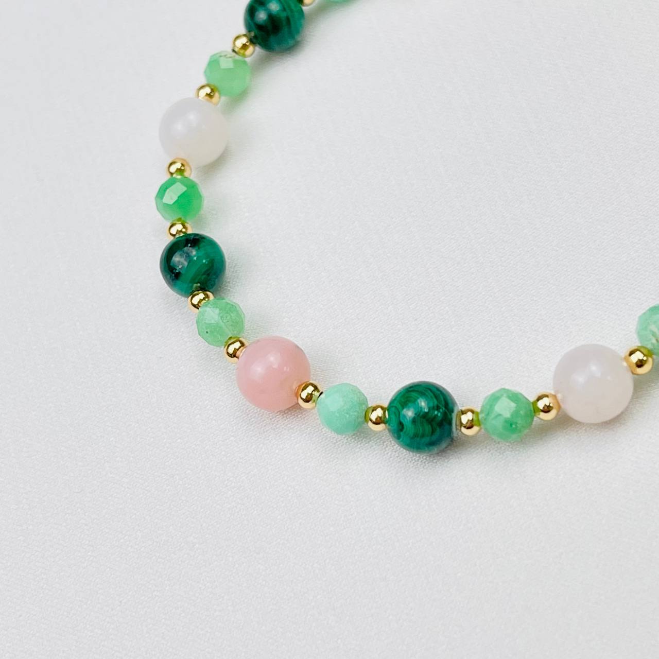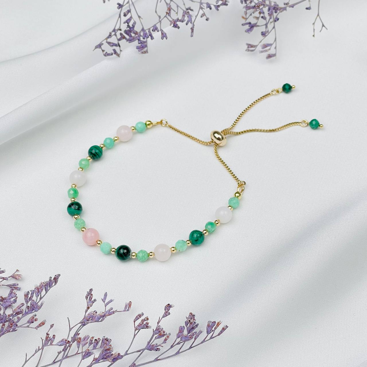 Радуга Самоцветов Браслет регулируемый из Малахита, Хризопраза и Опала "Анахата"
