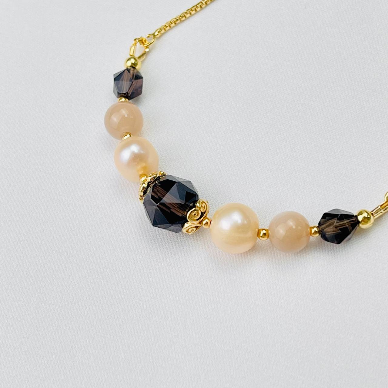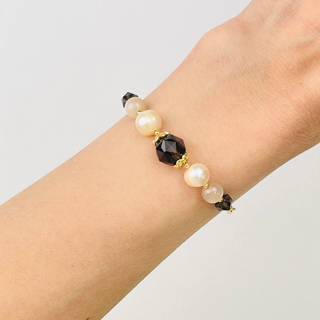 Радуга Самоцветов Браслет регулируемый из Раухтопаза, Жемчуга и Лунного камня