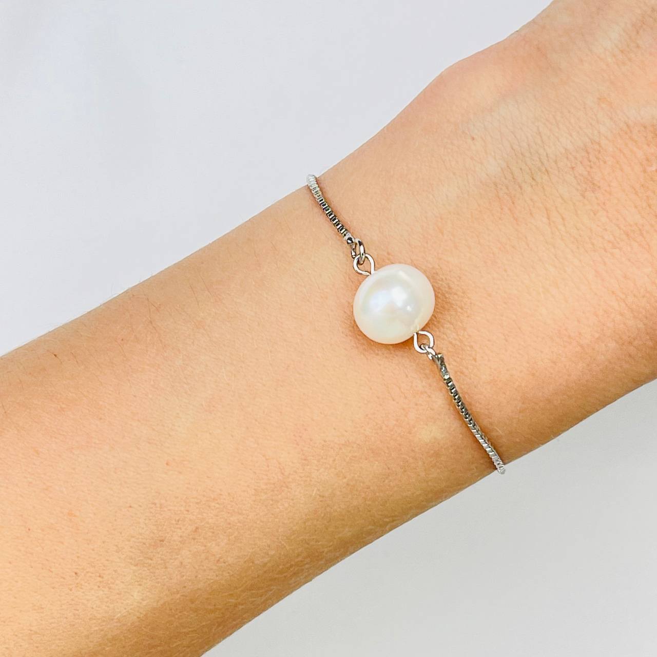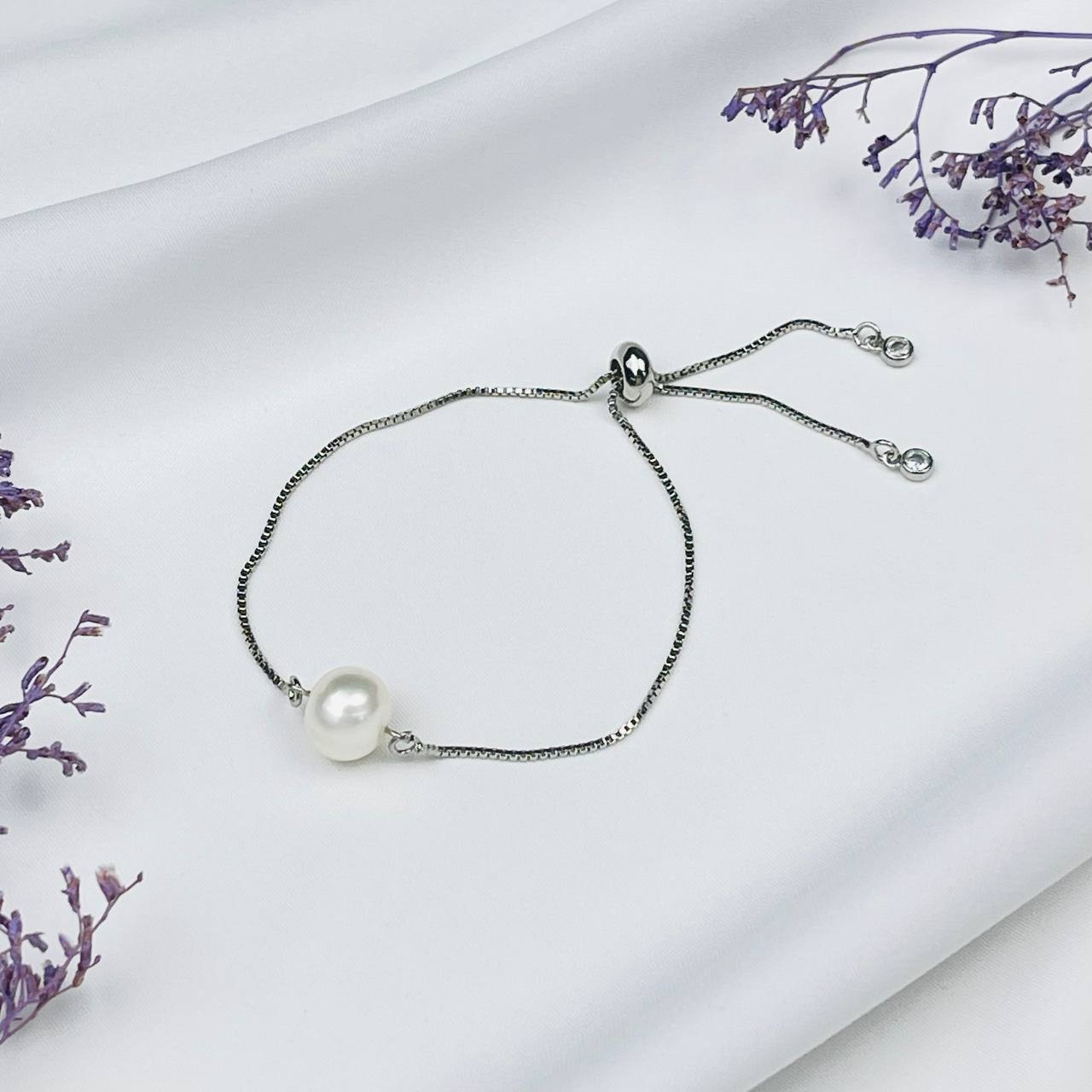 Радуга Самоцветов Браслет регулируемый на цепочке с Жемчугом