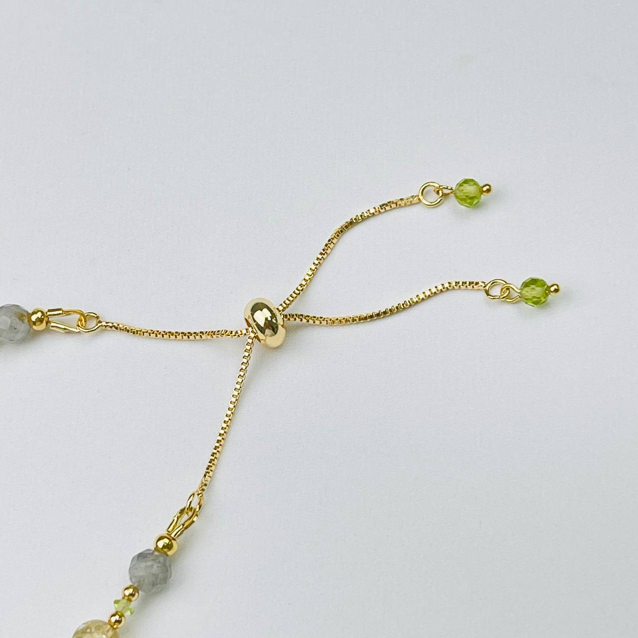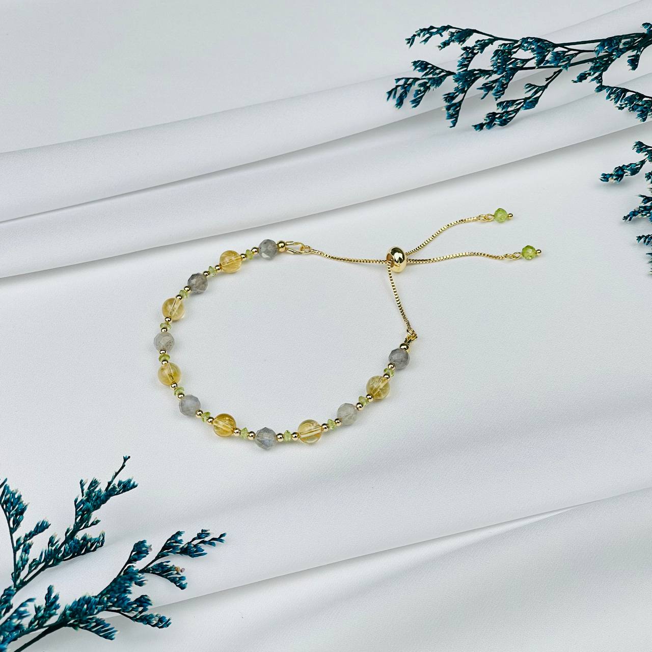 Радуга Самоцветов Браслет регулируемый (на материальное благополучие) из Лабрадора, Цитрина и Хризолита