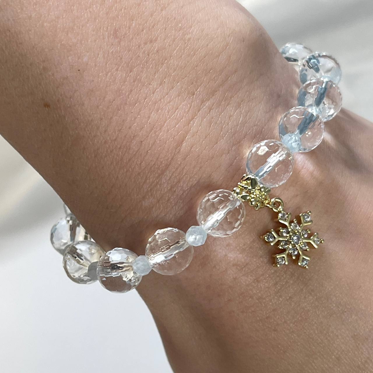 Радуга Самоцветов Браслет с подвеской Снежинка из Горного Хрусталя и Аквамарина