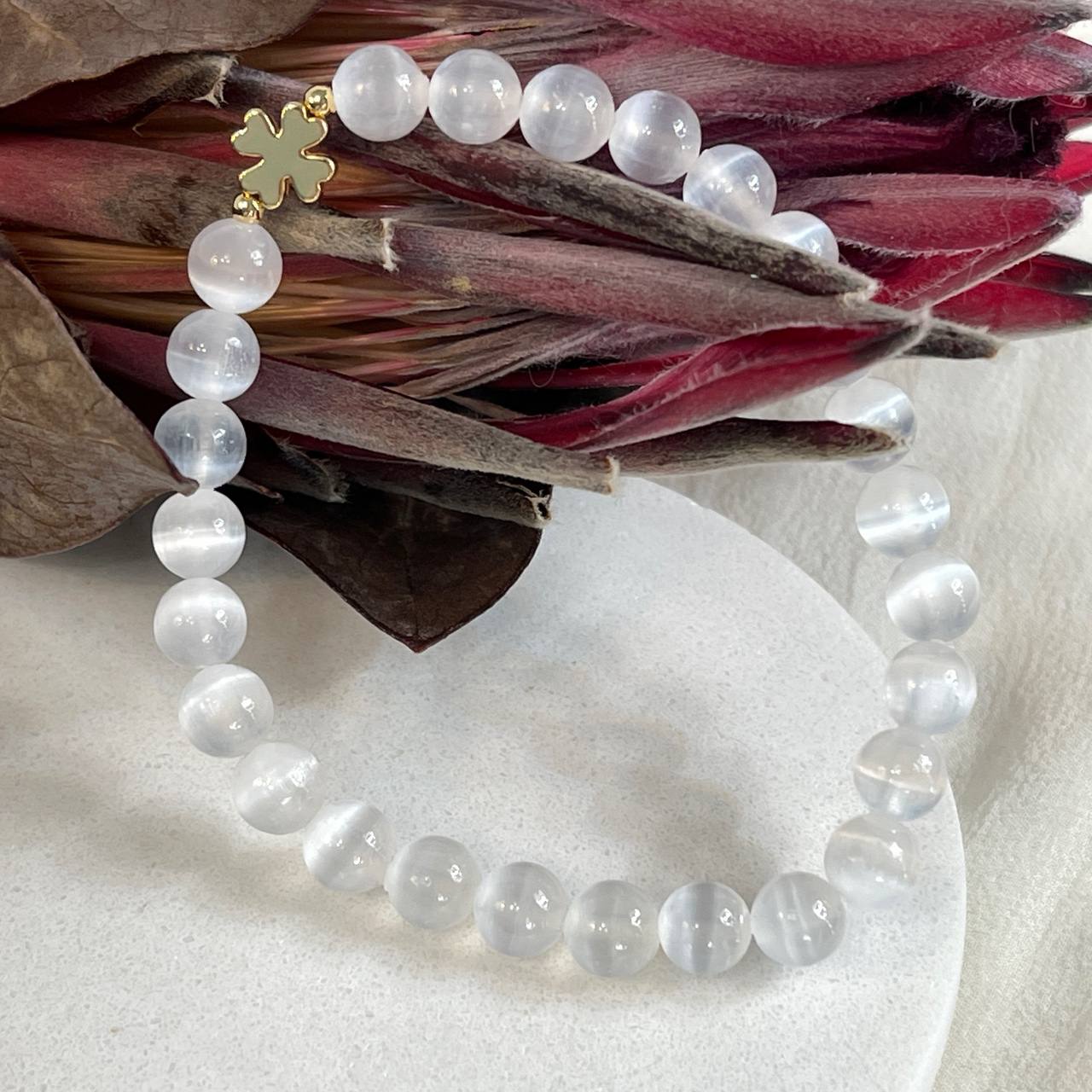 Радуга Самоцветов Браслет со вставкой "Клевер" из Селенита