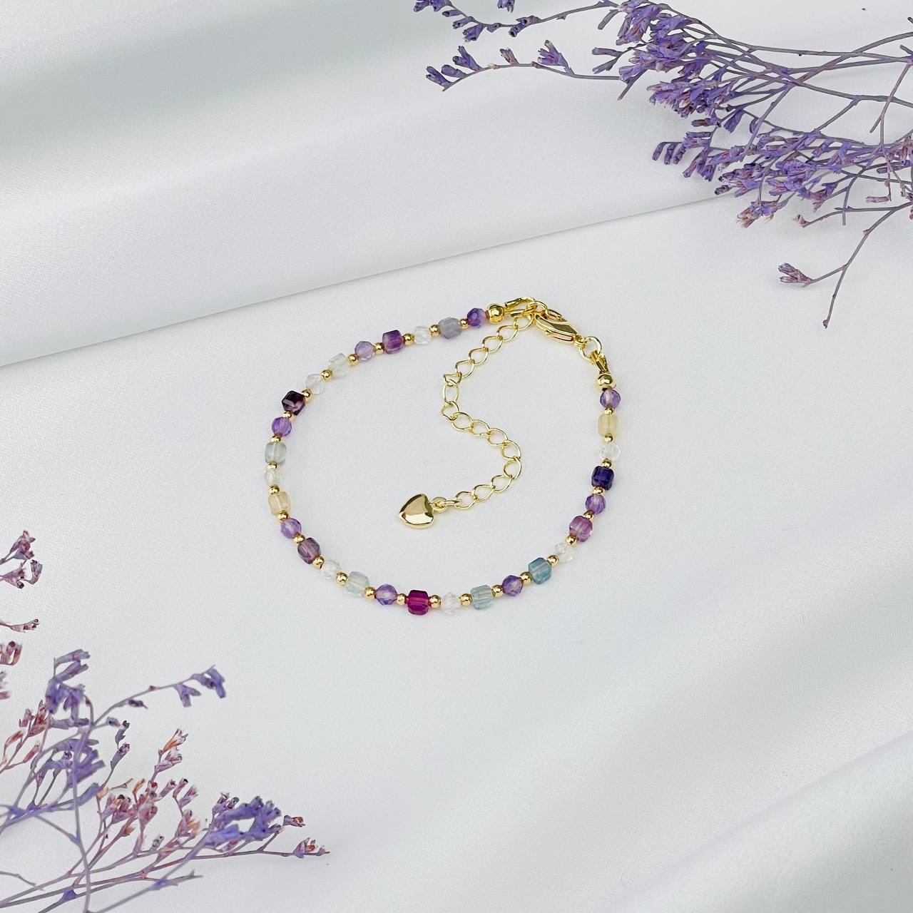 Радуга Самоцветов Браслет "Стихия Эфир" из Аметиста, Флюорита и Горного Хрусталя