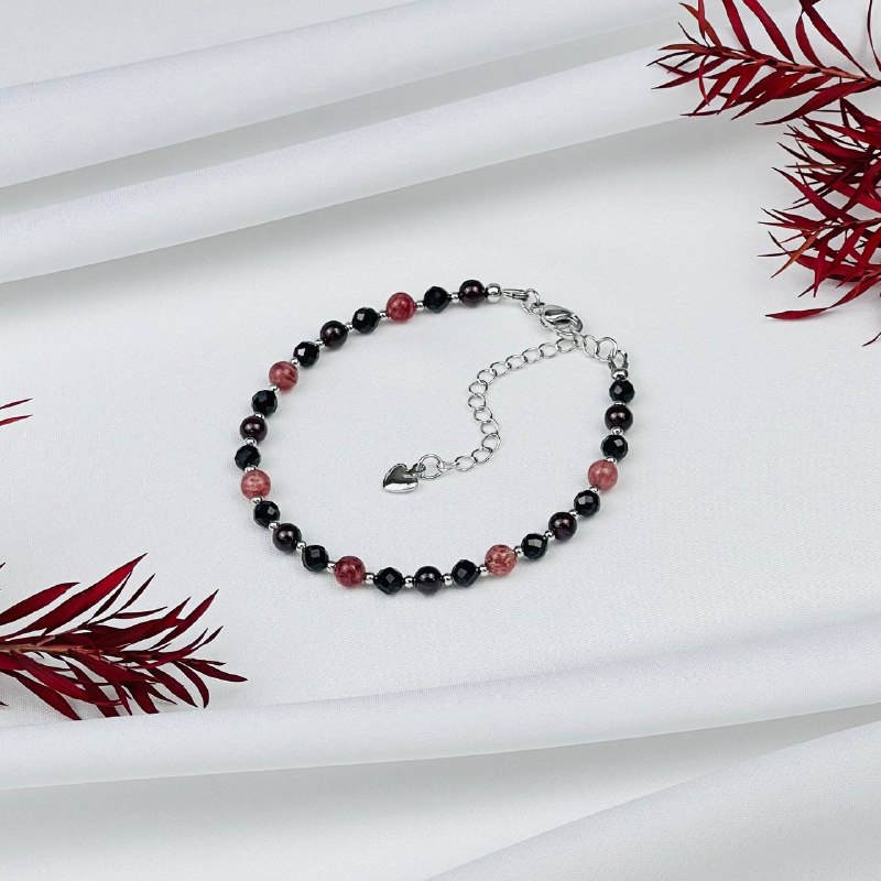 Радуга Самоцветов Браслет "Стихия Огонь" из Граната, Шпинели и Клубничного кварца