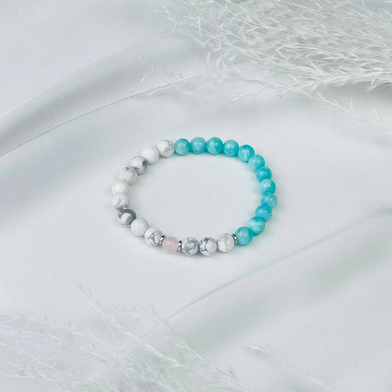 Радуга Самоцветов Браслет "Стихия Воздух" из Амазонита, Говлита и Розового кварца