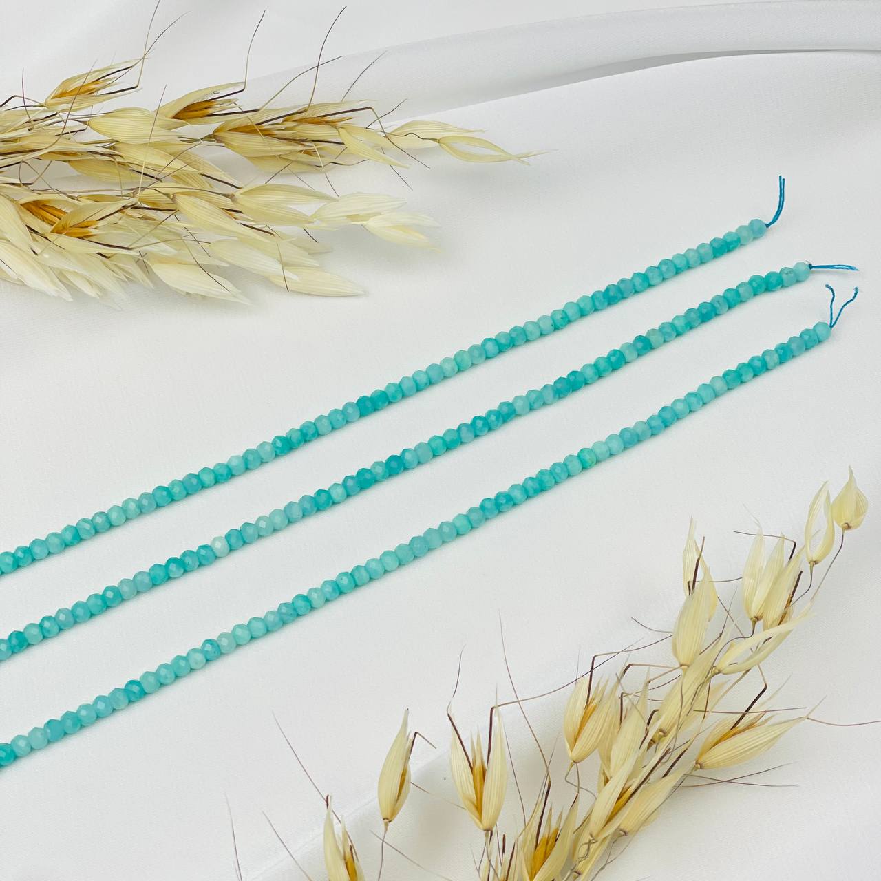 Цвет камня: Бирюзовый Месторожден..показатьие: Перу Камень: Амазонит Поверхность: Граненый Размер: 3х4 ммие: Перу