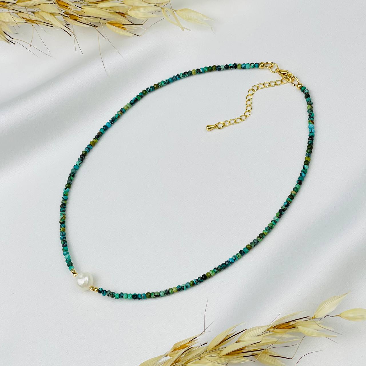 Радуга Самоцветов Колье из Бирюзы и Жемчуга