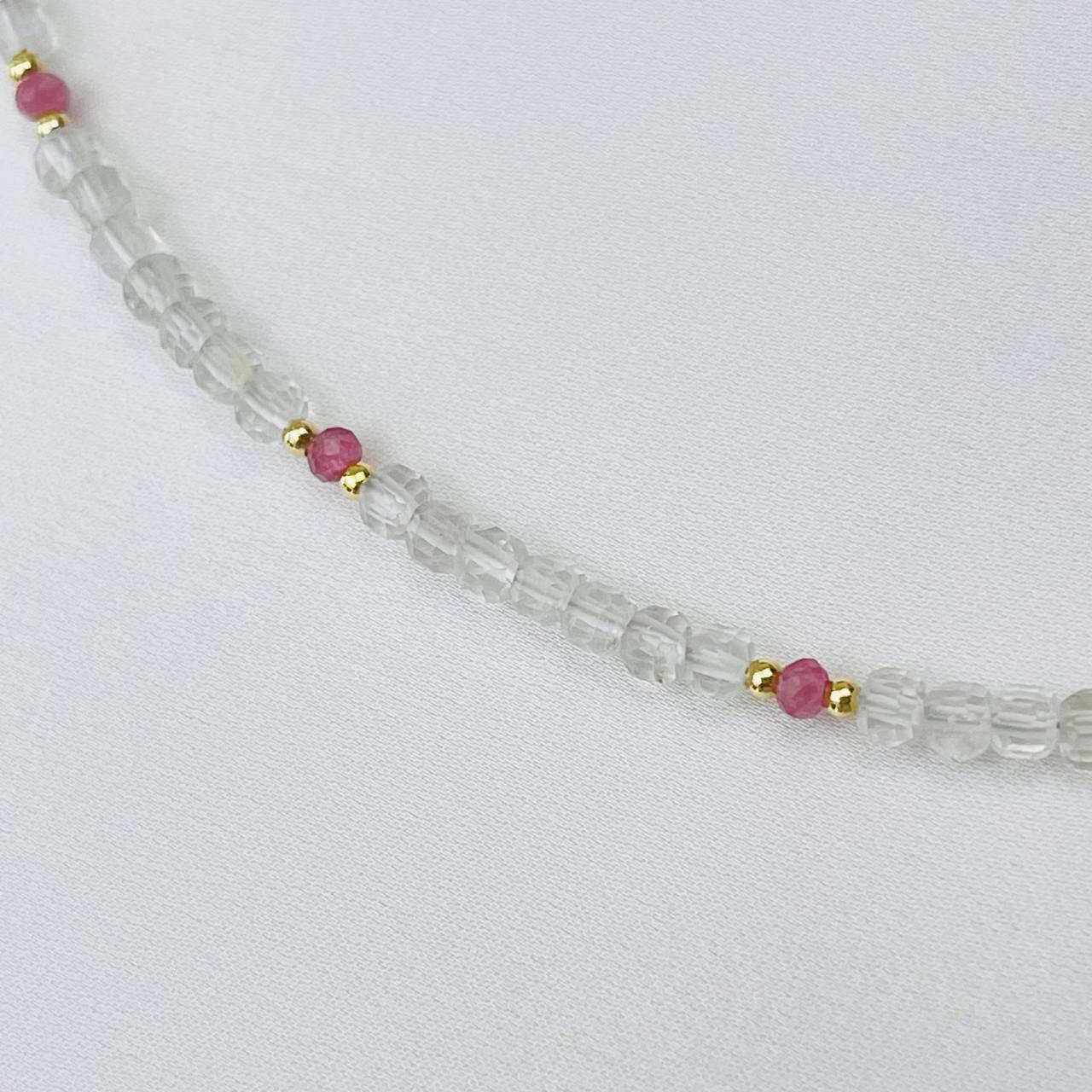 Радуга Самоцветов Бусы-Чокер из Горного Хрусталя и розового Турмалина