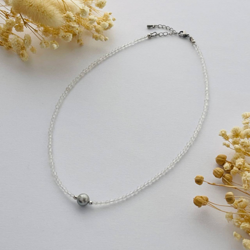 Радуга Самоцветов Колье из Горного Хрусталя с Жемчугом