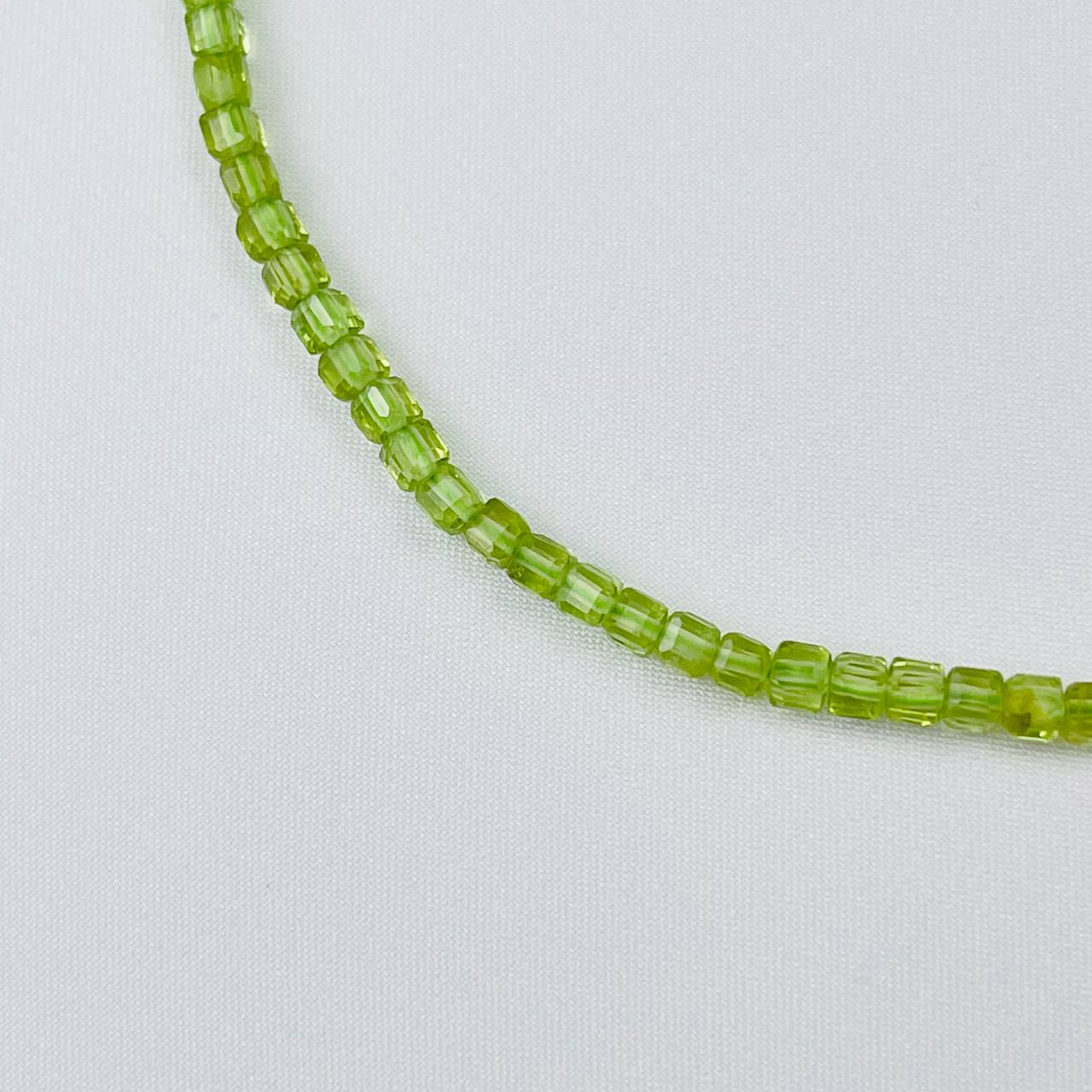 Цвет камня: Зелёный Месторождение..показать: США Камень: Хризолит Покрытие: Золото 14К Поверхность: Граненый Размер: 3х3 мм Производитель: Радуга Самоцветов (Россия) Тип замка: Карабин с цепочкой: США