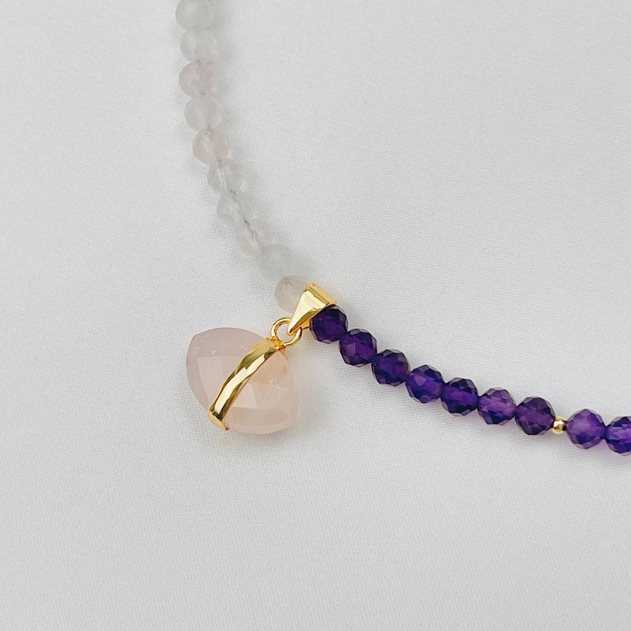 Радуга Самоцветов Колье из Розового кварца и Аметиста