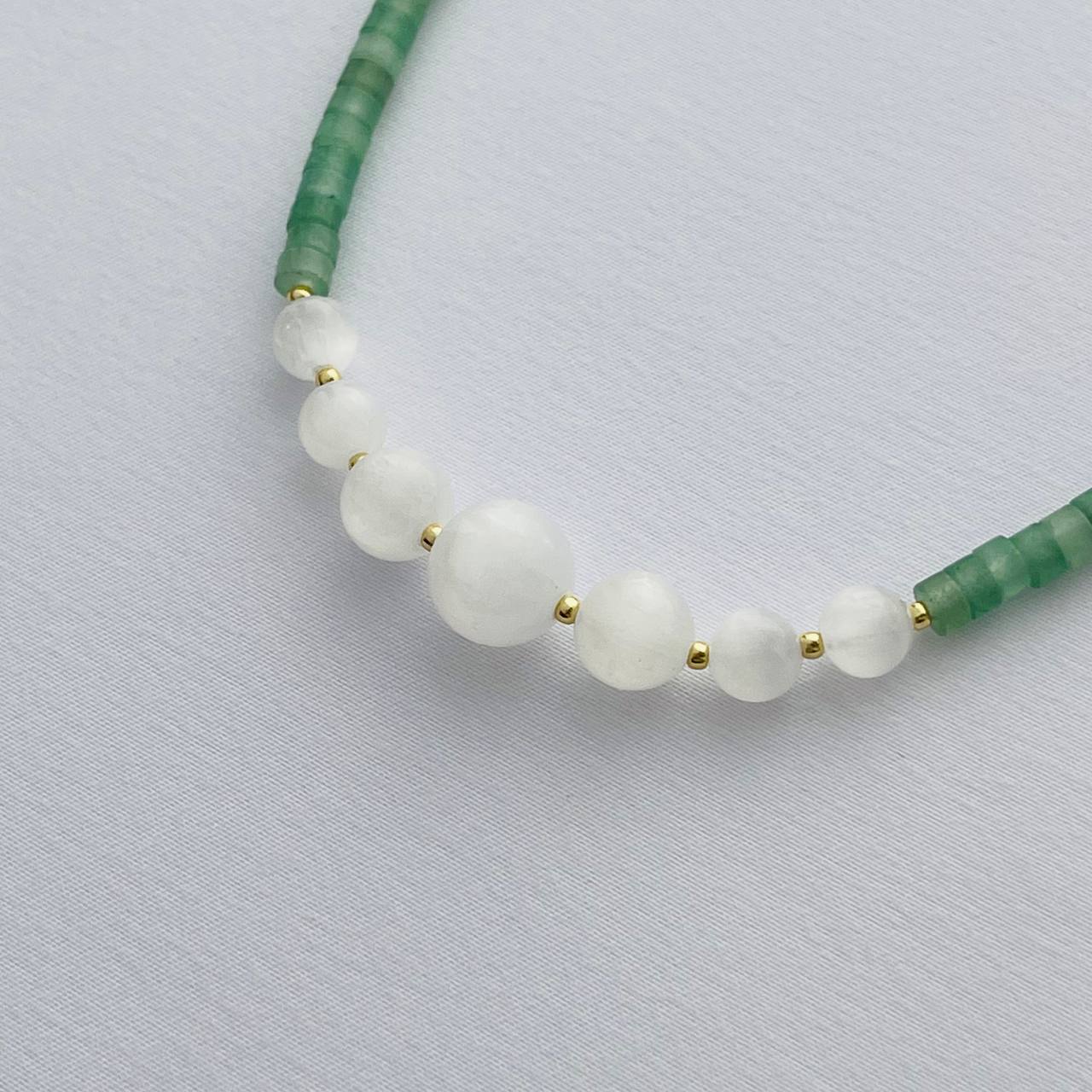 Радуга Самоцветов Бусы-Чокер из зеленого Кварца с Селенитом
