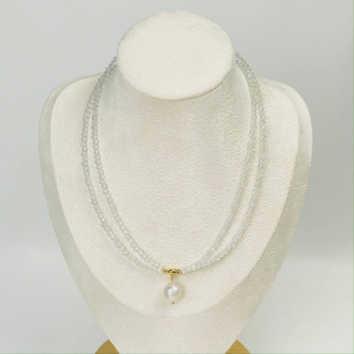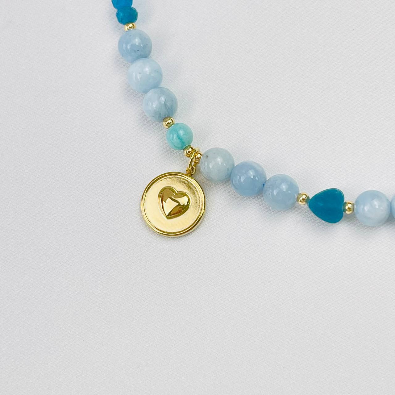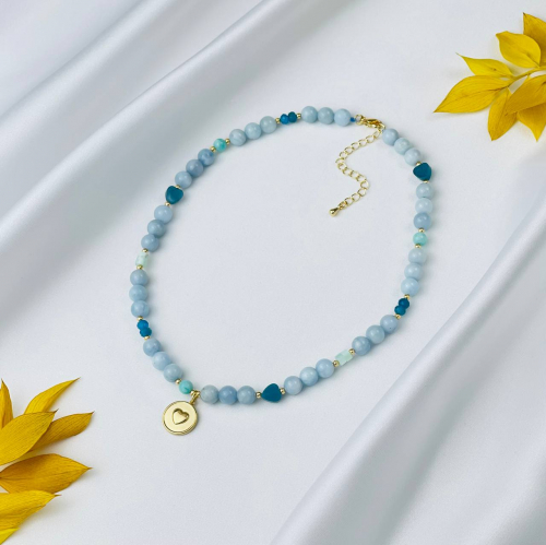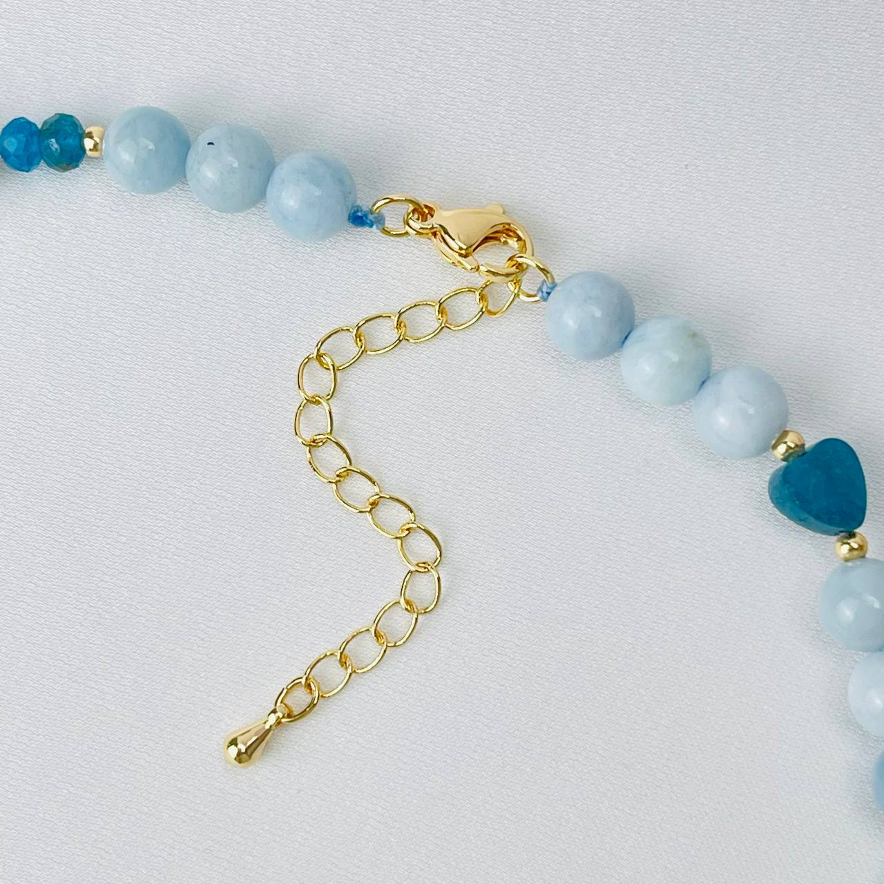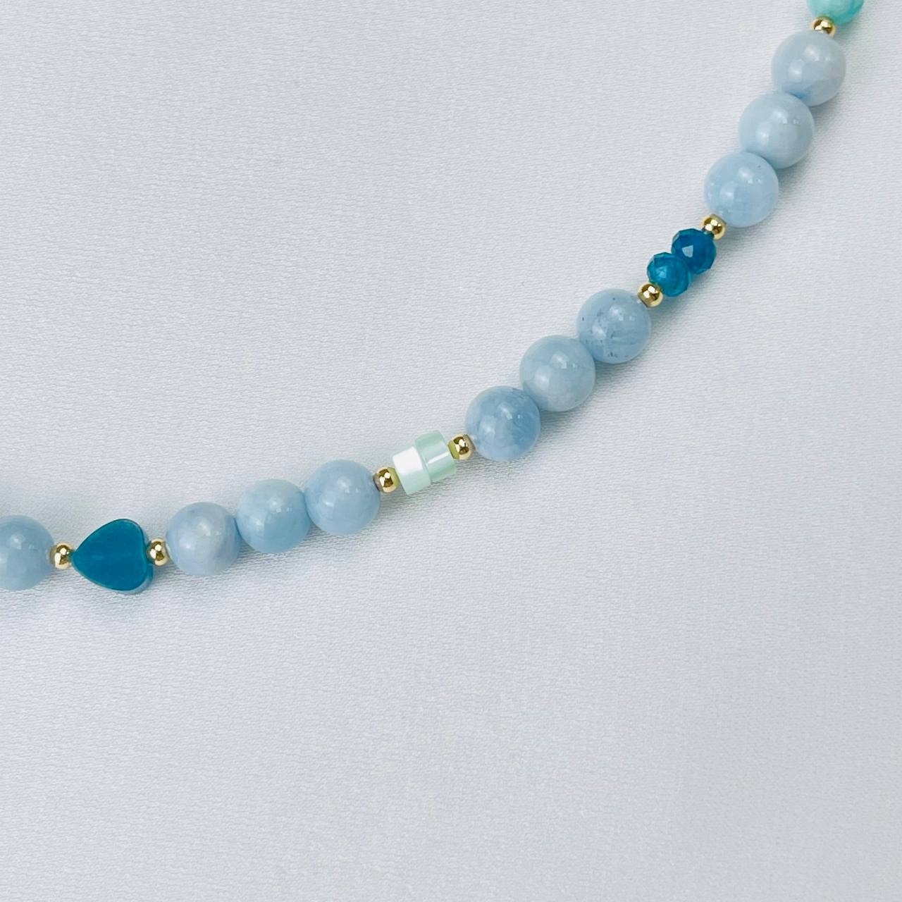 Радуга Самоцветов Бусы детские из Аквамарина, Апатита, Амазонита и Перламутра с подвеской