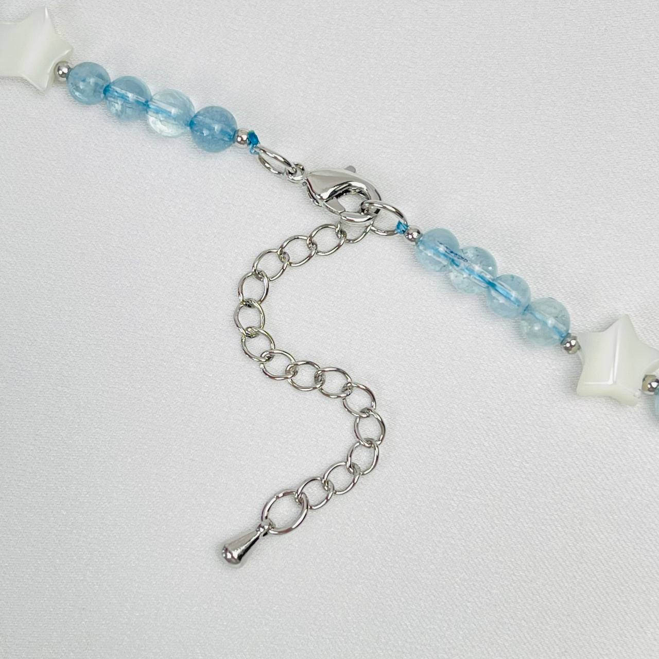 Цвет камня: Миксовый Месторождени..показатье: Бразилия Камень: Аквамарин Вставка: Перламутр Покрытие: Бижутерный сплав Диаметр: 4-12 мм Поверхность: Гладкий/Граненый Производитель: Радуга Самоцветов (Россия) Тип замка: Карабин с цепочкойе: Бразилия