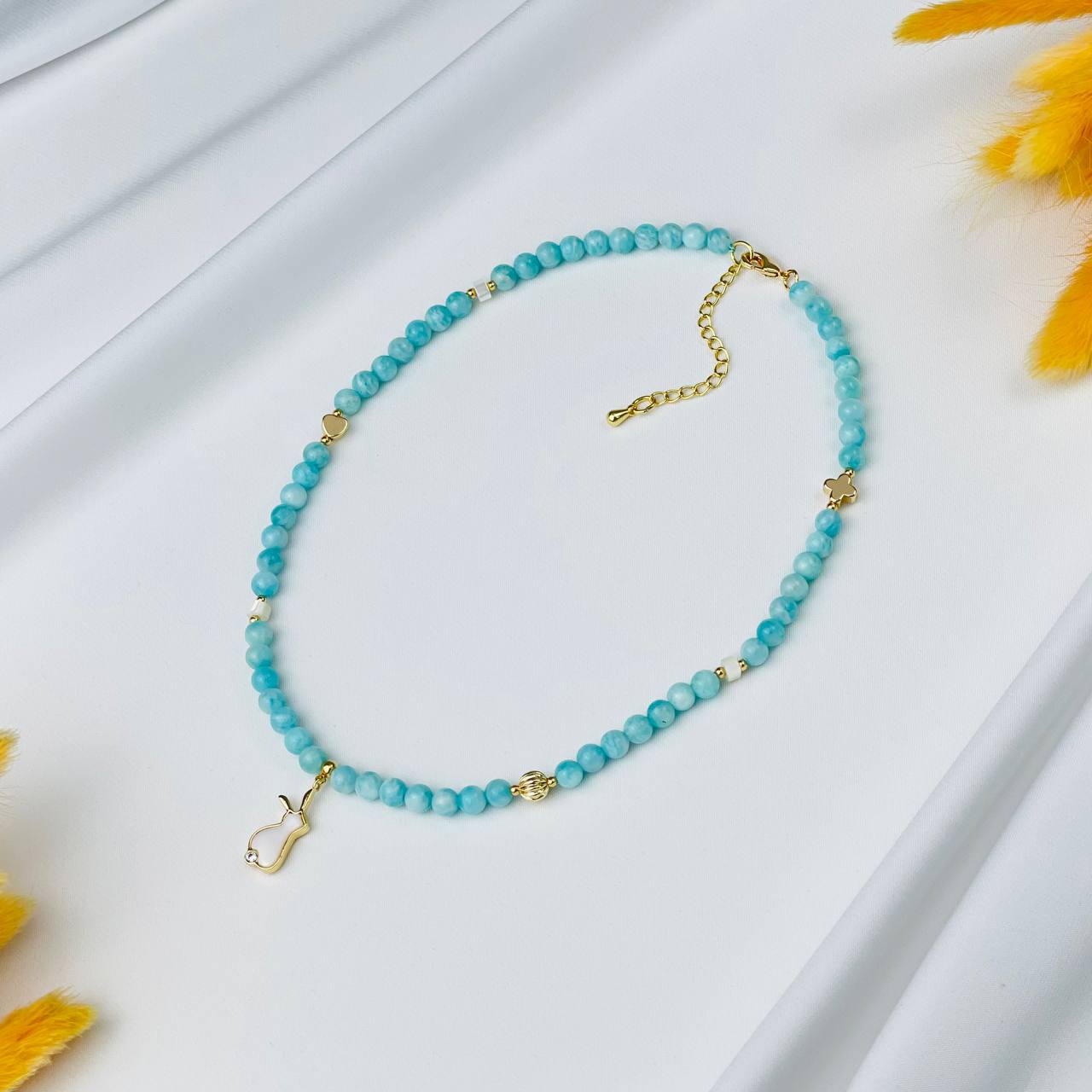 Цвет камня: Миксовый Месторождени..показатье: Перу Камень: Амазонит Покрытие: Золото 14К Диаметр: 4 мм Поверхность: Гладкий Производитель: Радуга Самоцветов (Россия) Тип замка: Карабин с цепочкойе: Перу