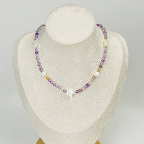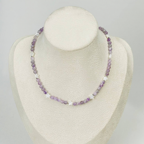 Цвет камня: Миксовый Месторождени..показатье: Бразилия Камень: Аметист Вставка: Перламутр Покрытие: Золото 14К Диаметр: 4-12 мм Поверхность: Гладкий/Граненый Производитель: Радуга Самоцветов (Россия) Тип замка: Карабин с цепочкойе: Бразилия