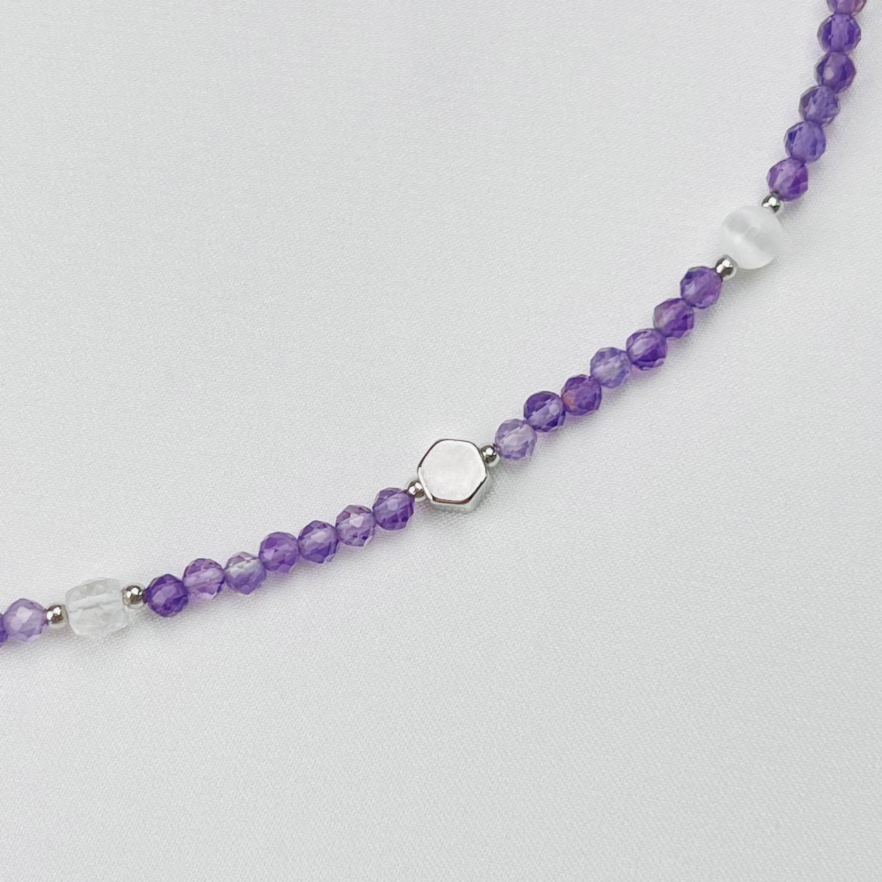 Радуга Самоцветов Бусы детские из Аметиста, Горного Хрусталя и Селенита