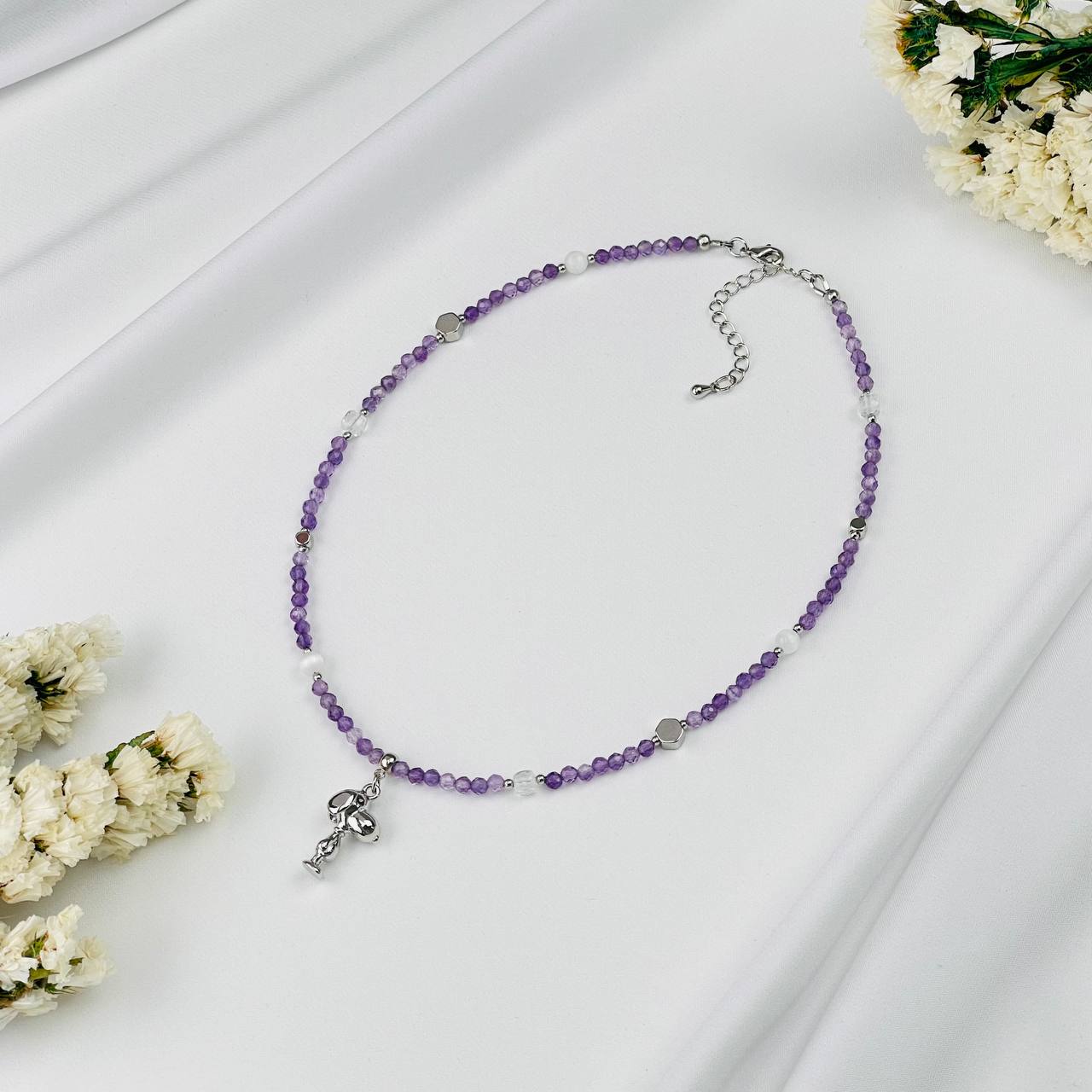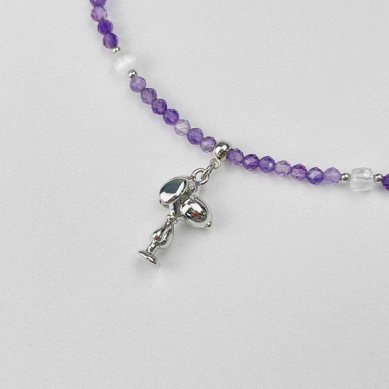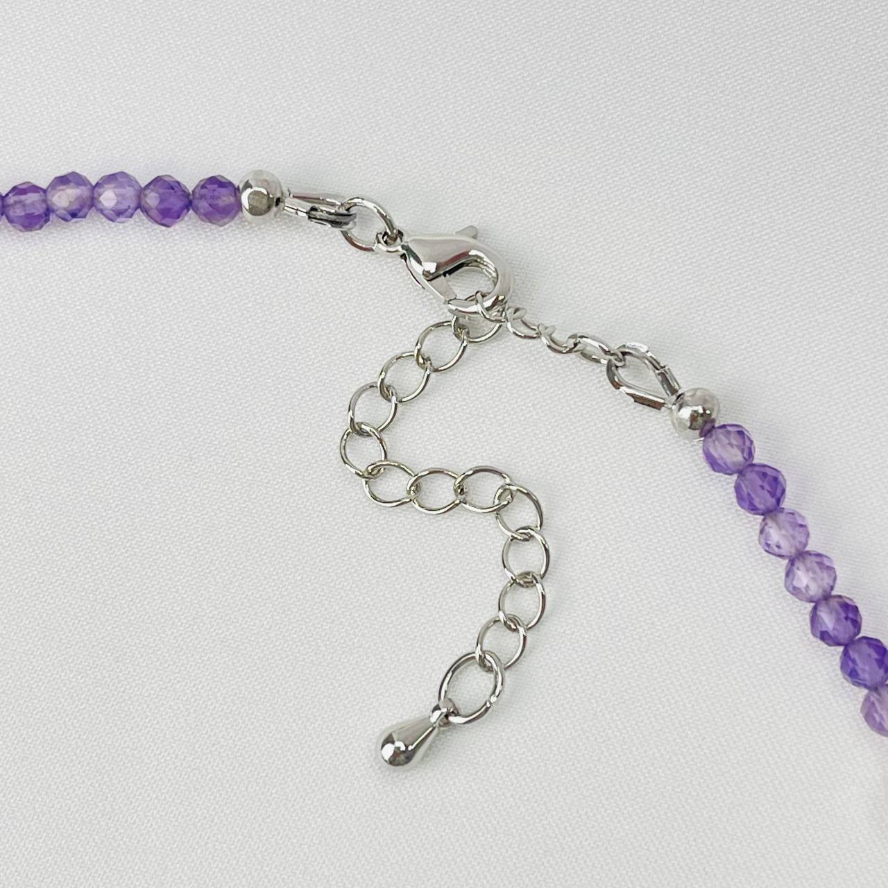 Цвет камня: Миксовый Месторождени..показатье: Бразилия Камень: Аметист Покрытие: Бижутерный сплав Диаметр: 3-4 мм Поверхность: Граненый Производитель: Радуга Самоцветов (Россия) Тип замка: Карабин с цепочкойе: Бразилия