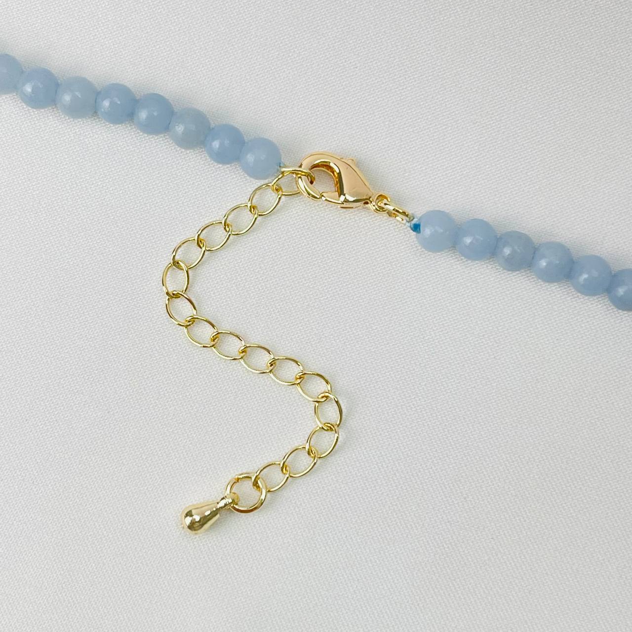 Цвет камня: Миксовый Месторождени..показатье: Перу Камень: Ангелит Покрытие: Золото 14К Диаметр: 4 мм Поверхность: Гладкий Производитель: Радуга Самоцветов (Россия) Тип замка: Карабин с цепочкойе: Перу