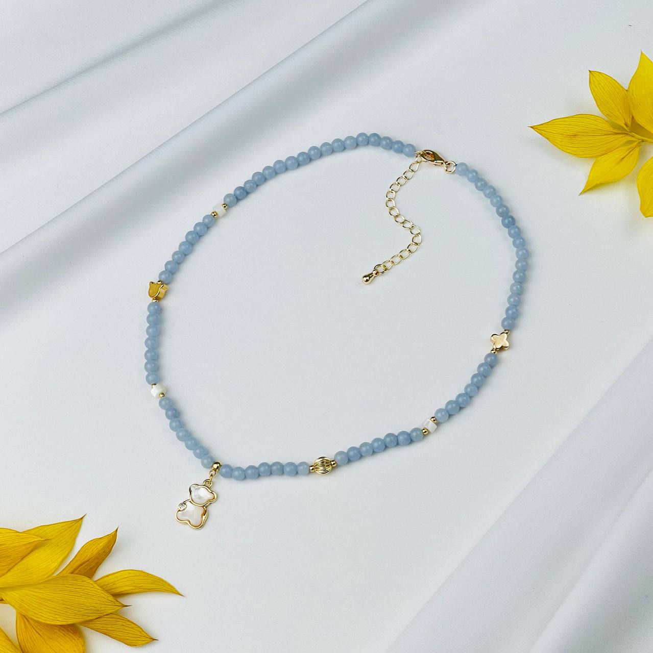 Радуга Самоцветов Бусы детские из Ангелита и Перламутра