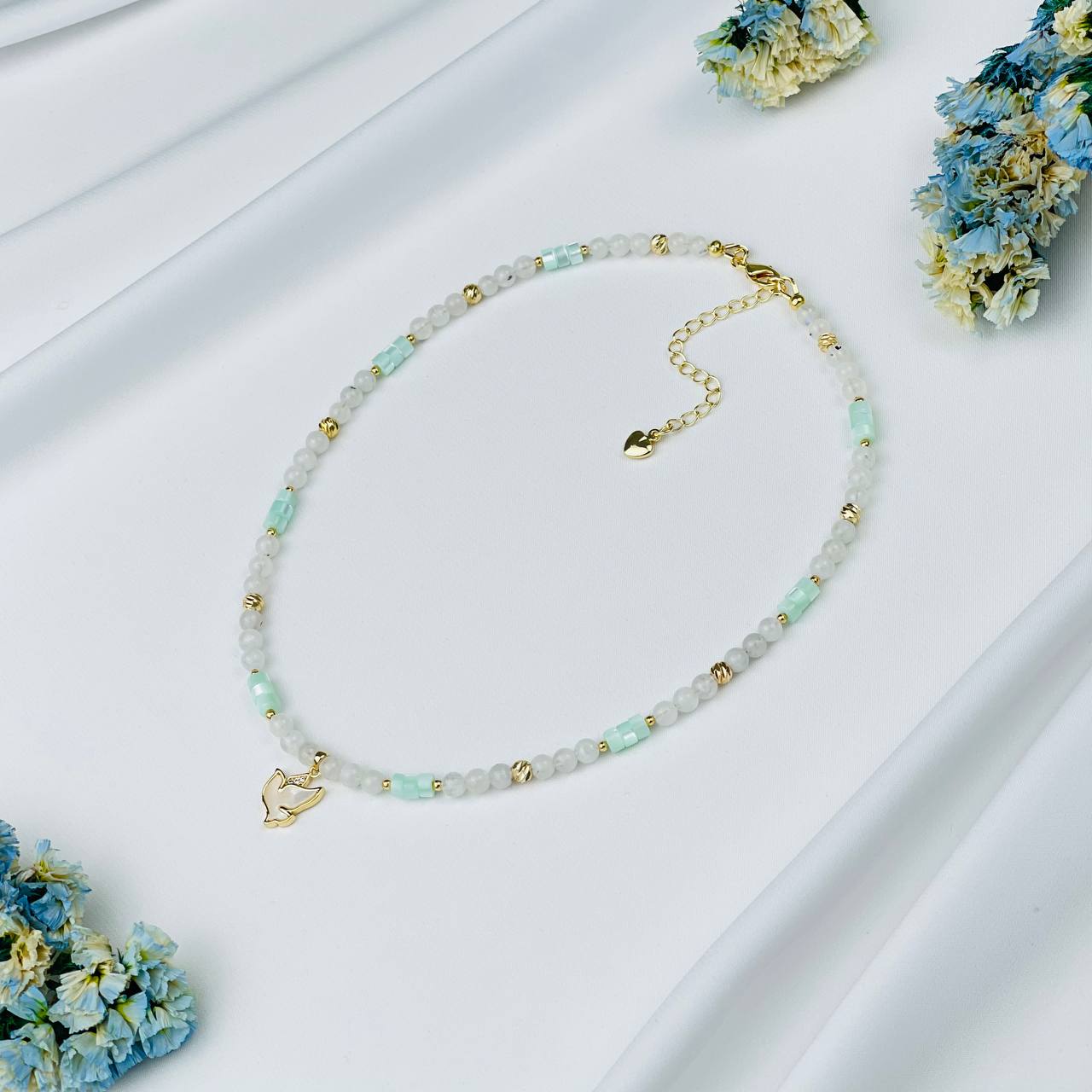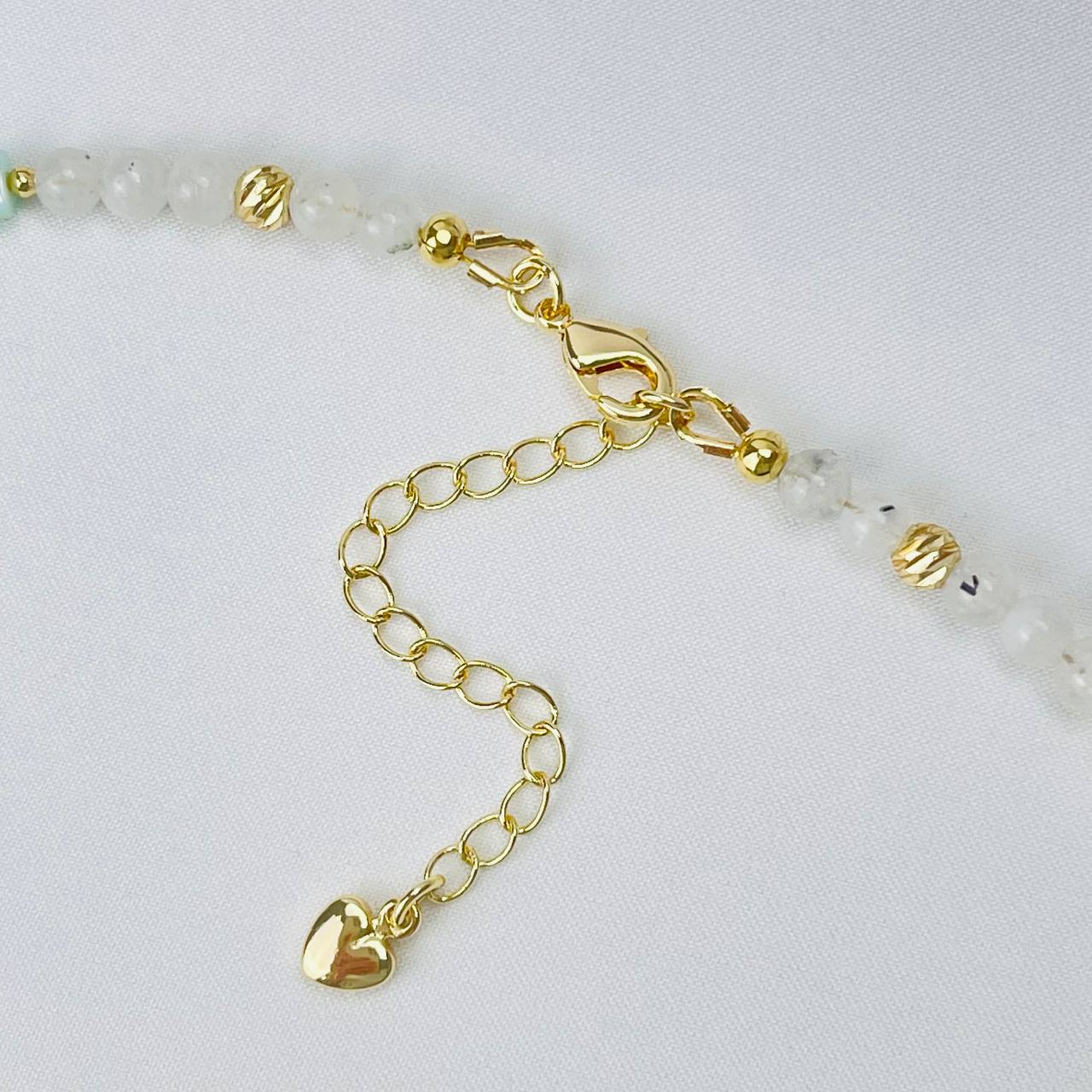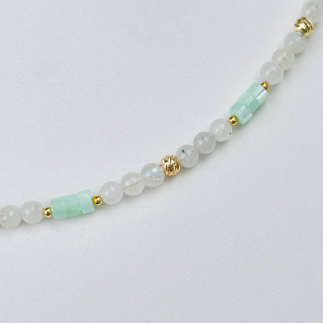 Радуга Самоцветов Бусы детские из Лунного камня с вкл. Турмалина и Перламутра
