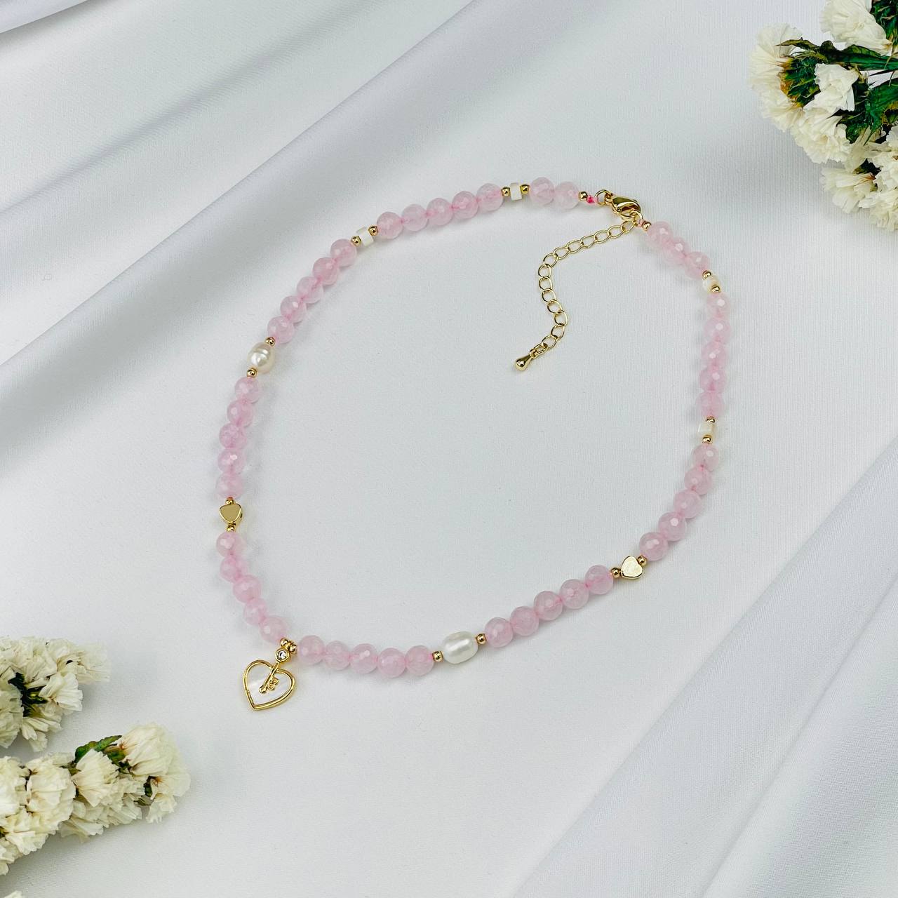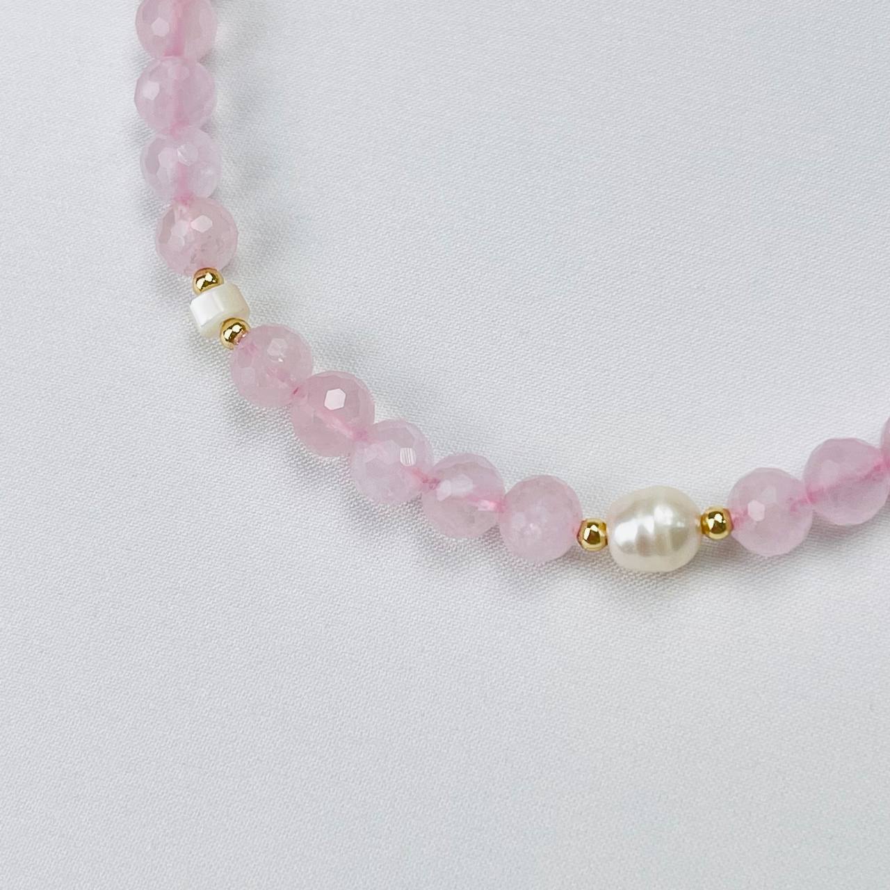 Радуга Самоцветов Бусы детские из Розового кварца, Жемчуга и Перламутра