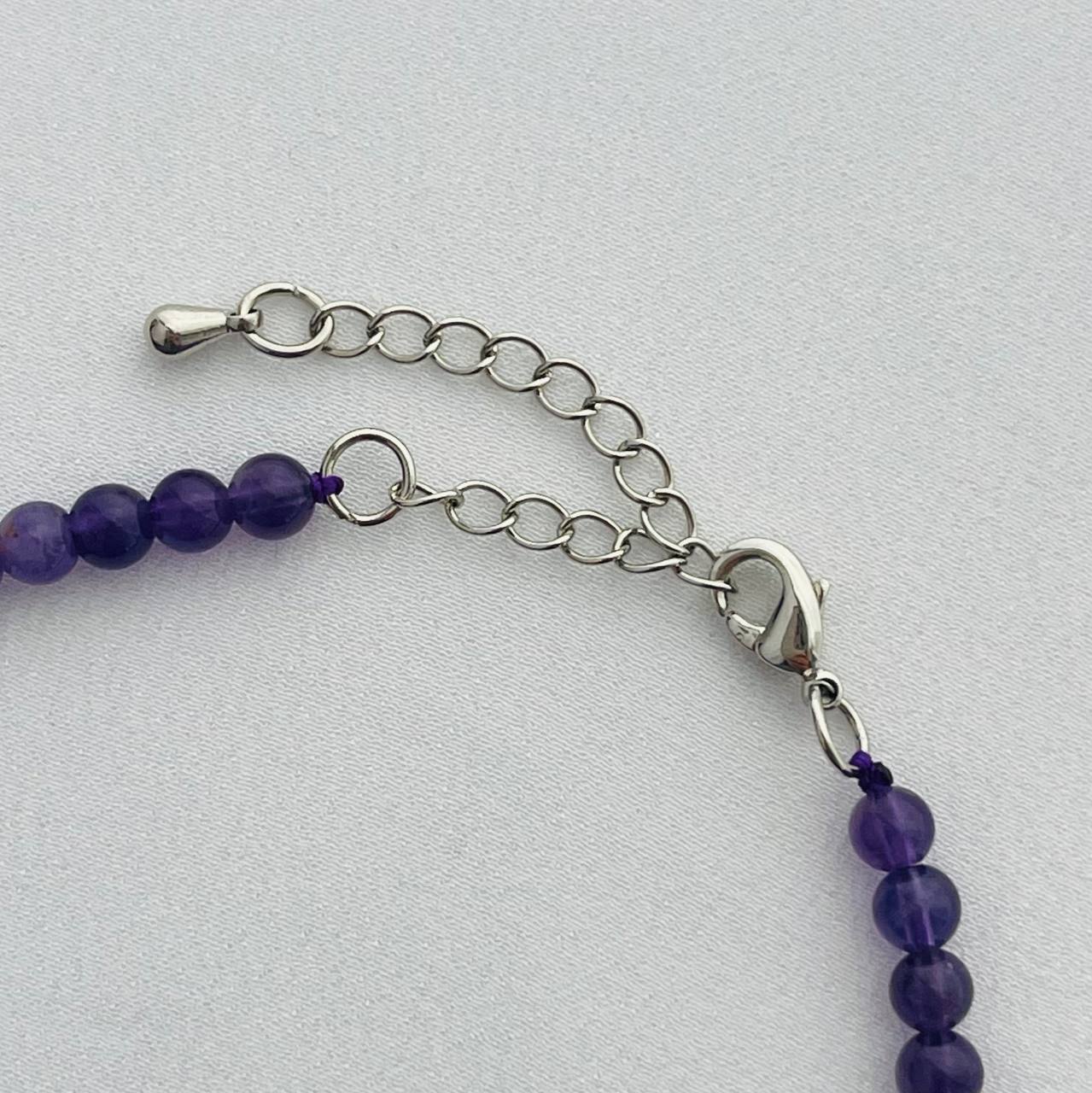 Цвет камня: Фиолетовый Месторожде..показатьние: Бразилия Камень: Аметист Покрытие: Бижутерный сплав Диаметр: 4,5 мм Поверхность: Гладкий Производитель: Радуга Самоцветов (Россия) Тип замка: Карабин с цепочкойние: Бразилия