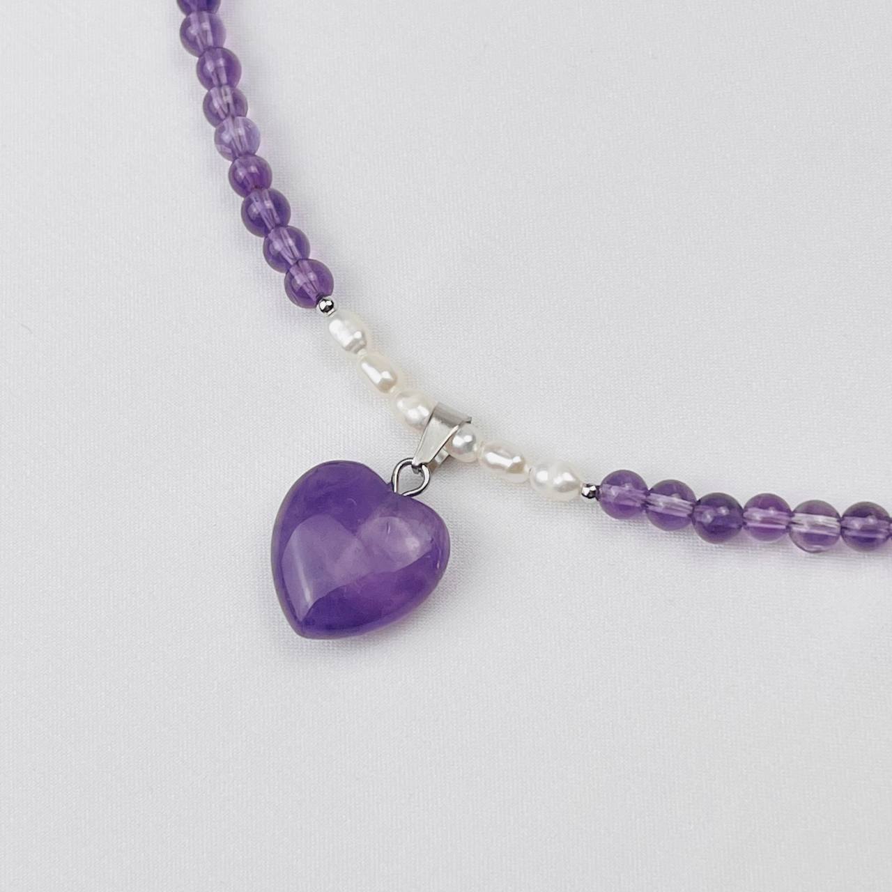 Радуга Самоцветов Колье из Аметиста и Жемчуга с кулоном "Сердце"
