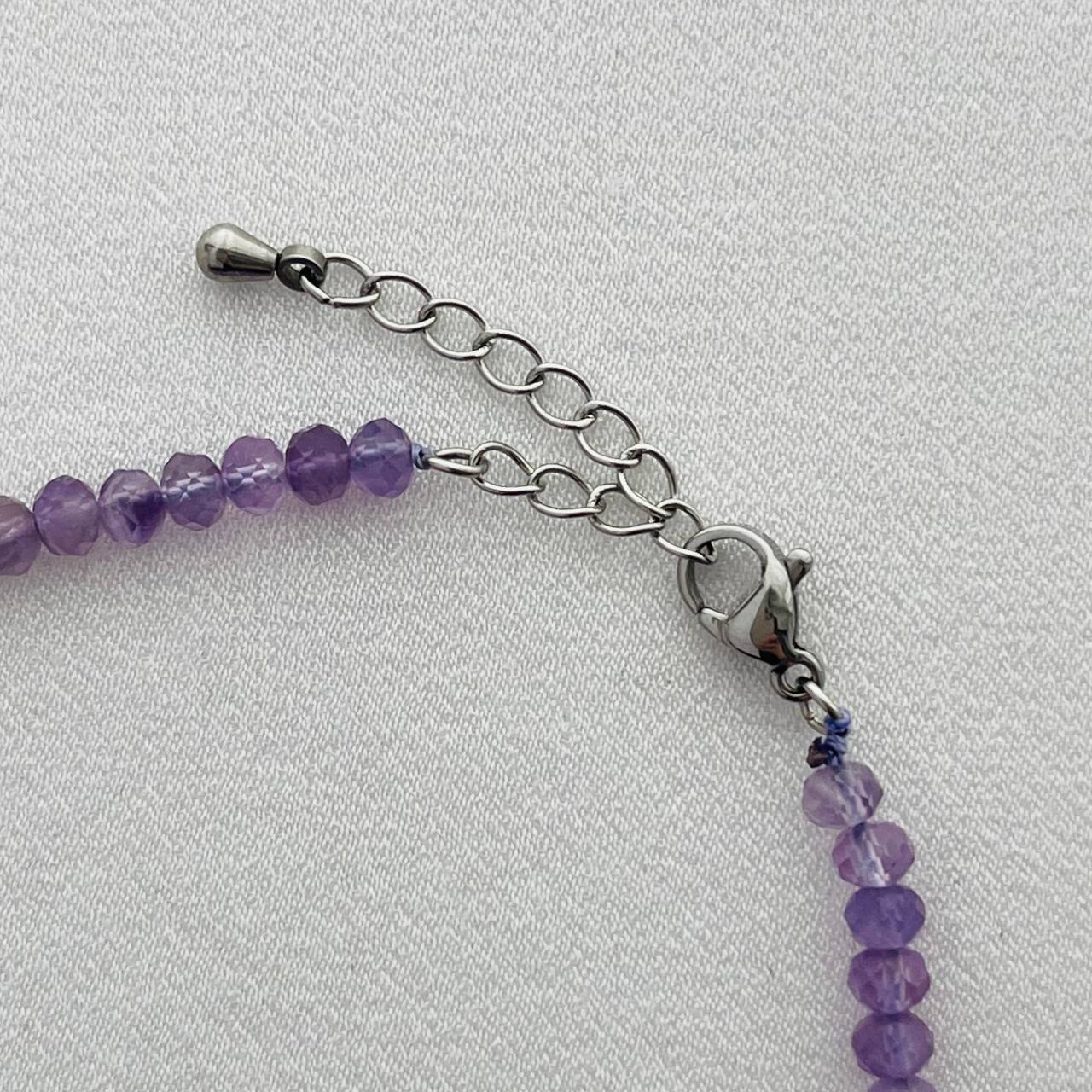 Цвет камня: Фиолетовый Месторожде..показатьние: Бразилия Камень: Аметист Покрытие: Сталь (покр) Поверхность: Граненый Размер: 3х4 мм Производитель: Радуга Самоцветов (Россия) Тип замка: Карабин с цепочкойние: Бразилия