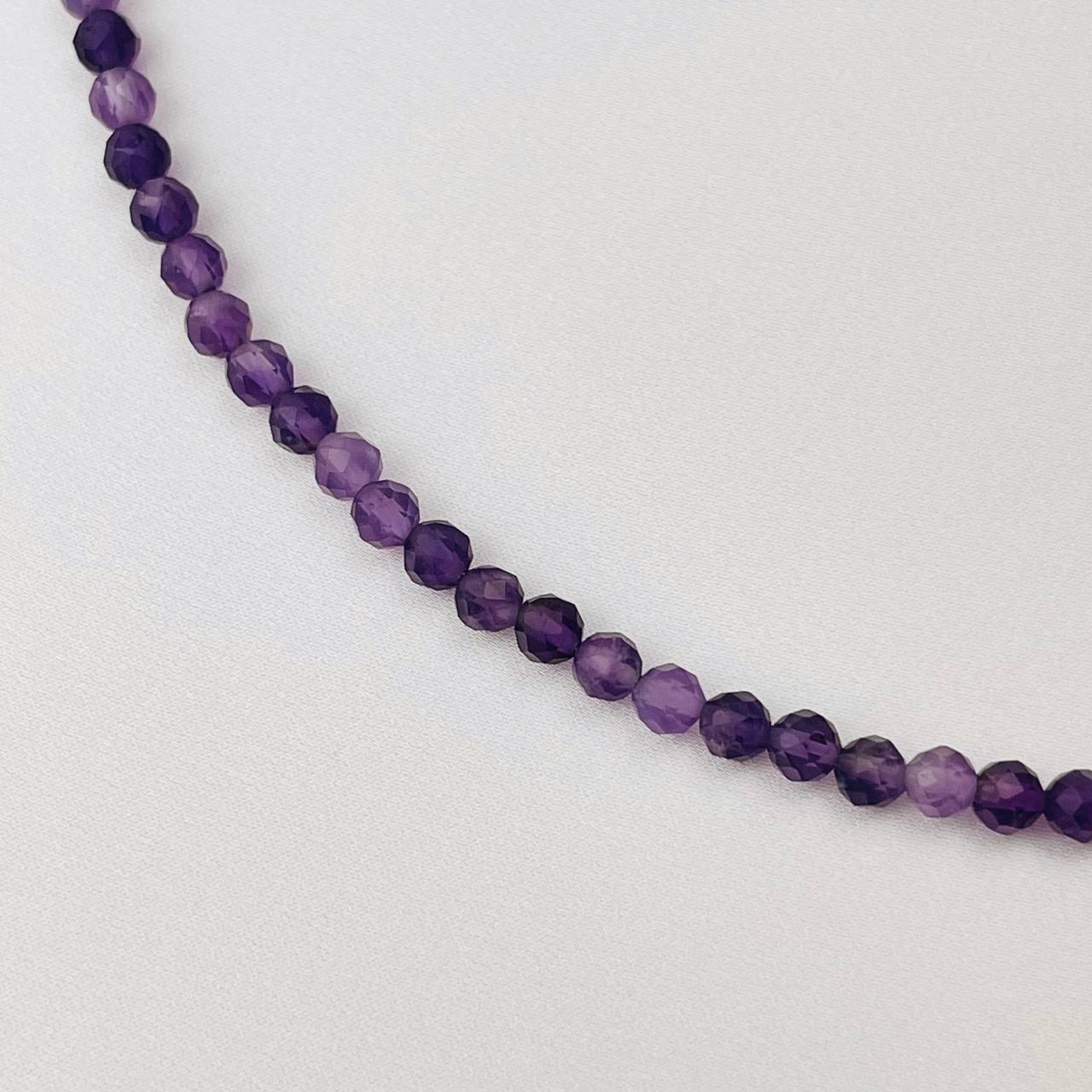 Цвет камня: Фиолетовый Месторожде..показатьние: Бразилия Камень: Аметист Покрытие: Бижутерный сплав Диаметр: 4 мм Поверхность: Граненый Производитель: Радуга Самоцветов (Россия) Тип замка: Карабин с цепочкойние: Бразилия