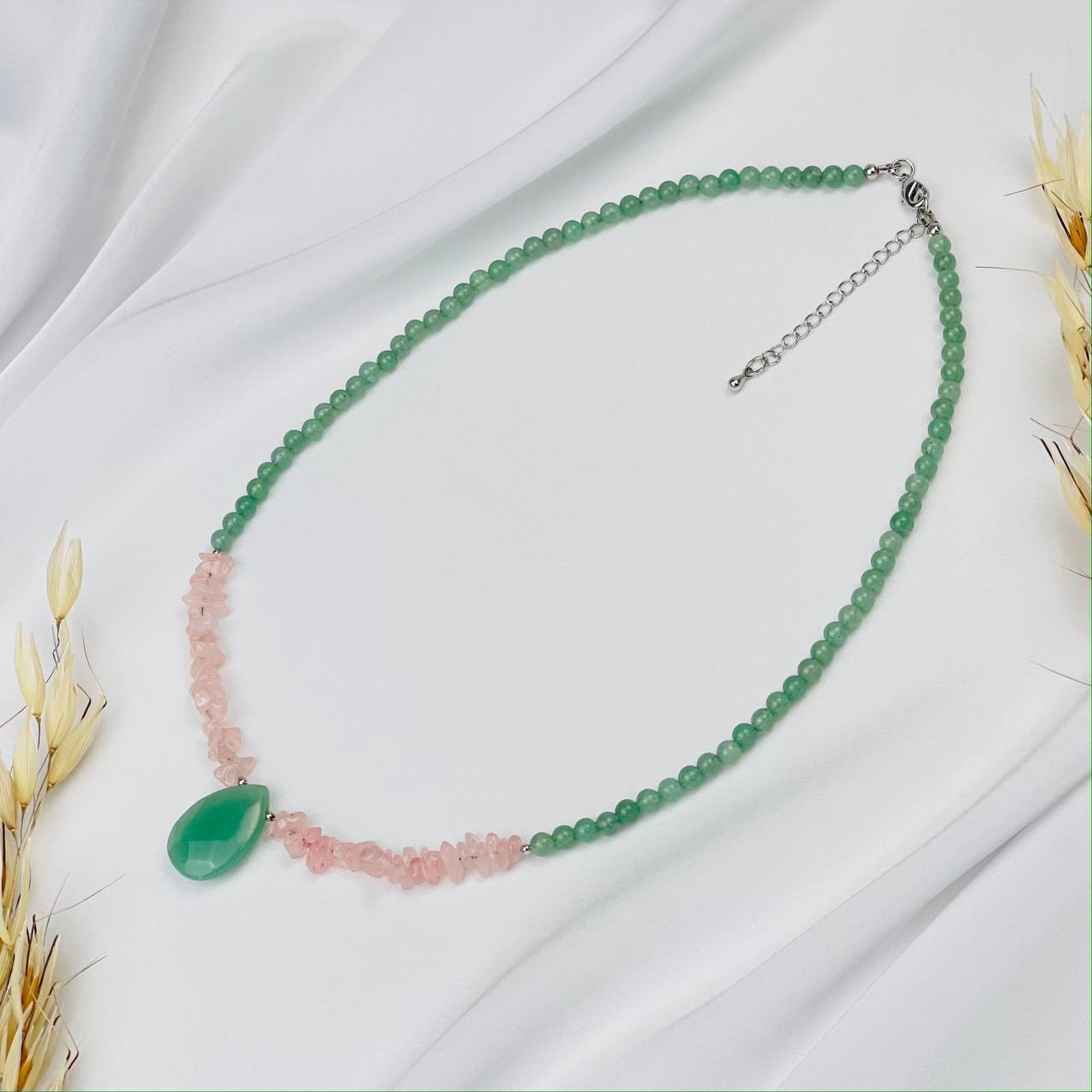 Радуга Самоцветов Колье из Авантюрина и Розового кварца