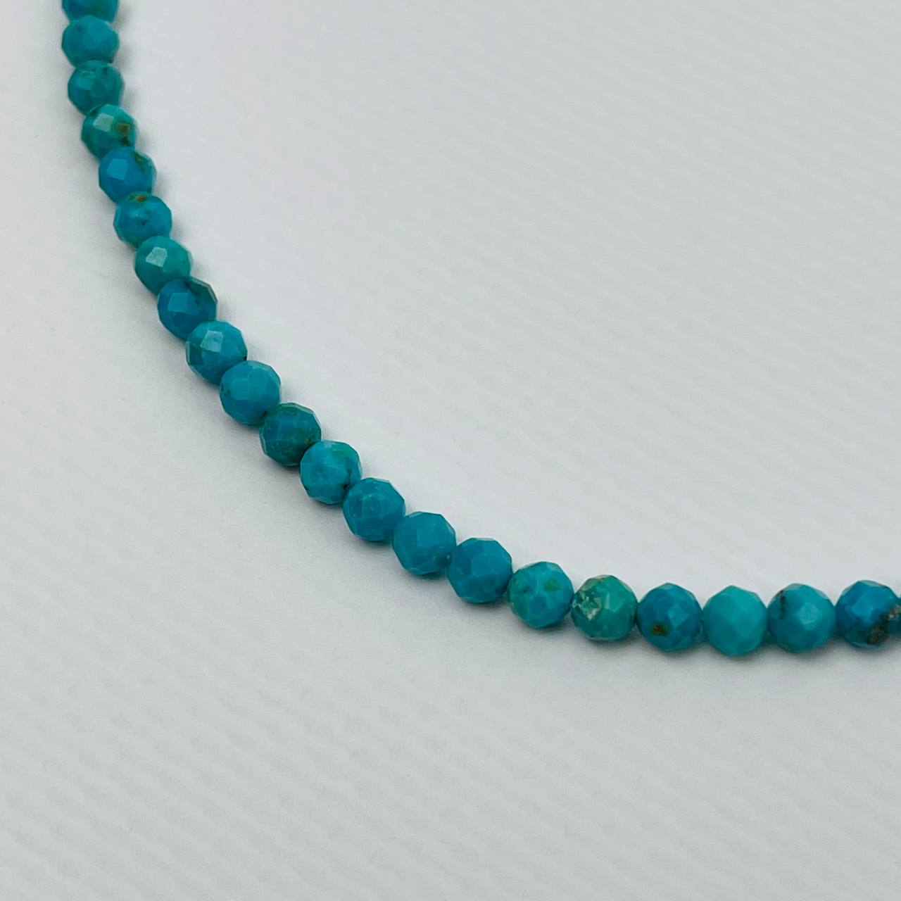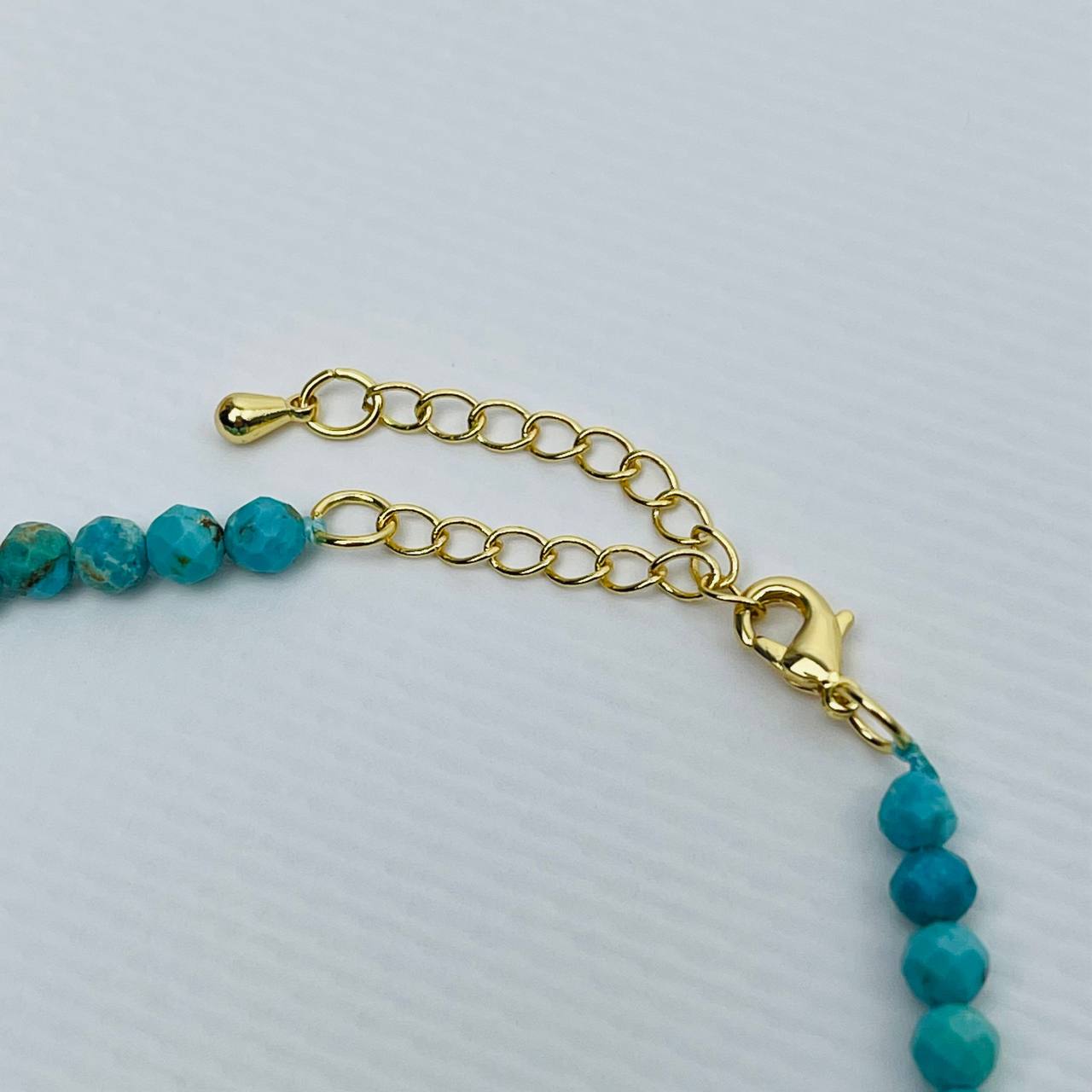 Цвет камня: Бирюзовый Месторожден..показатьие: Хубэй Камень: Бирюза Покрытие: Золото 14К Диаметр: 4 мм Поверхность: Граненый Производитель: Радуга Самоцветов (Россия) Тип замка: Карабин с цепочкойие: Хубэй
