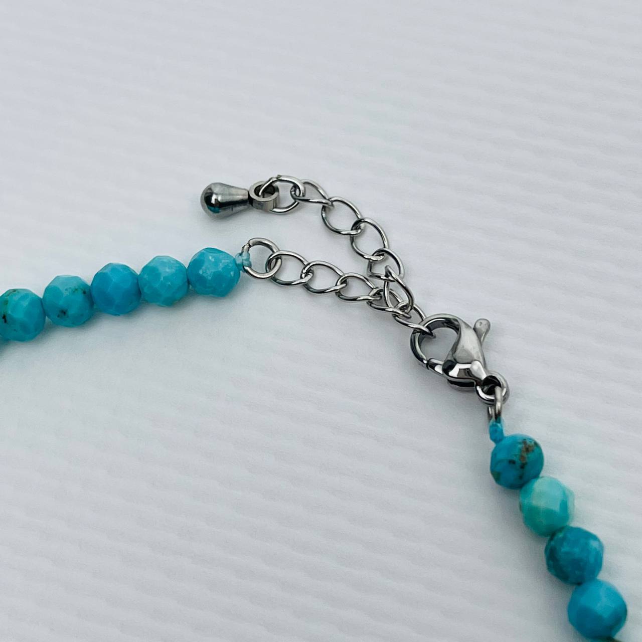 Цвет камня: Бирюзовый Камень: Бир..показатьюза Покрытие: Сталь (покр) Диаметр: 4 мм Поверхность: Граненый Производитель: Радуга Самоцветов (Россия) Тип замка: Карабин с цепочкойюза