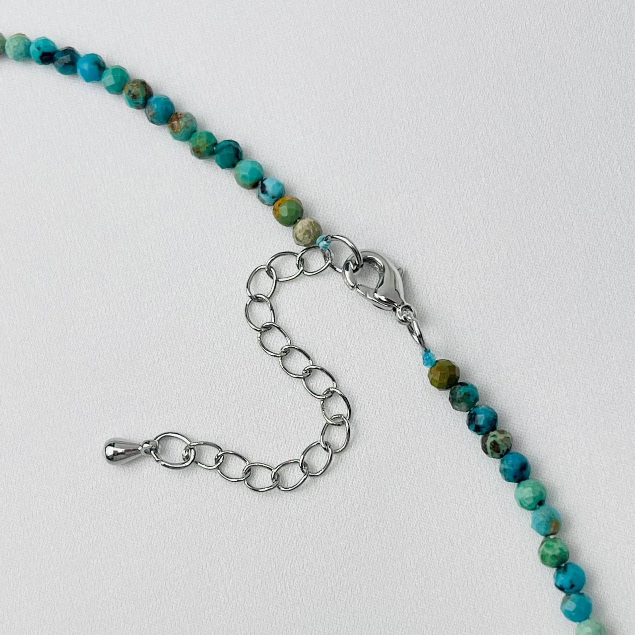 Цвет камня: Бирюзовый Камень: Бир..показатьюза Покрытие: Бижутерный сплав Диаметр: 3 мм Поверхность: Граненый Производитель: Радуга Самоцветов (Россия) Тип замка: Карабин с цепочкойюза