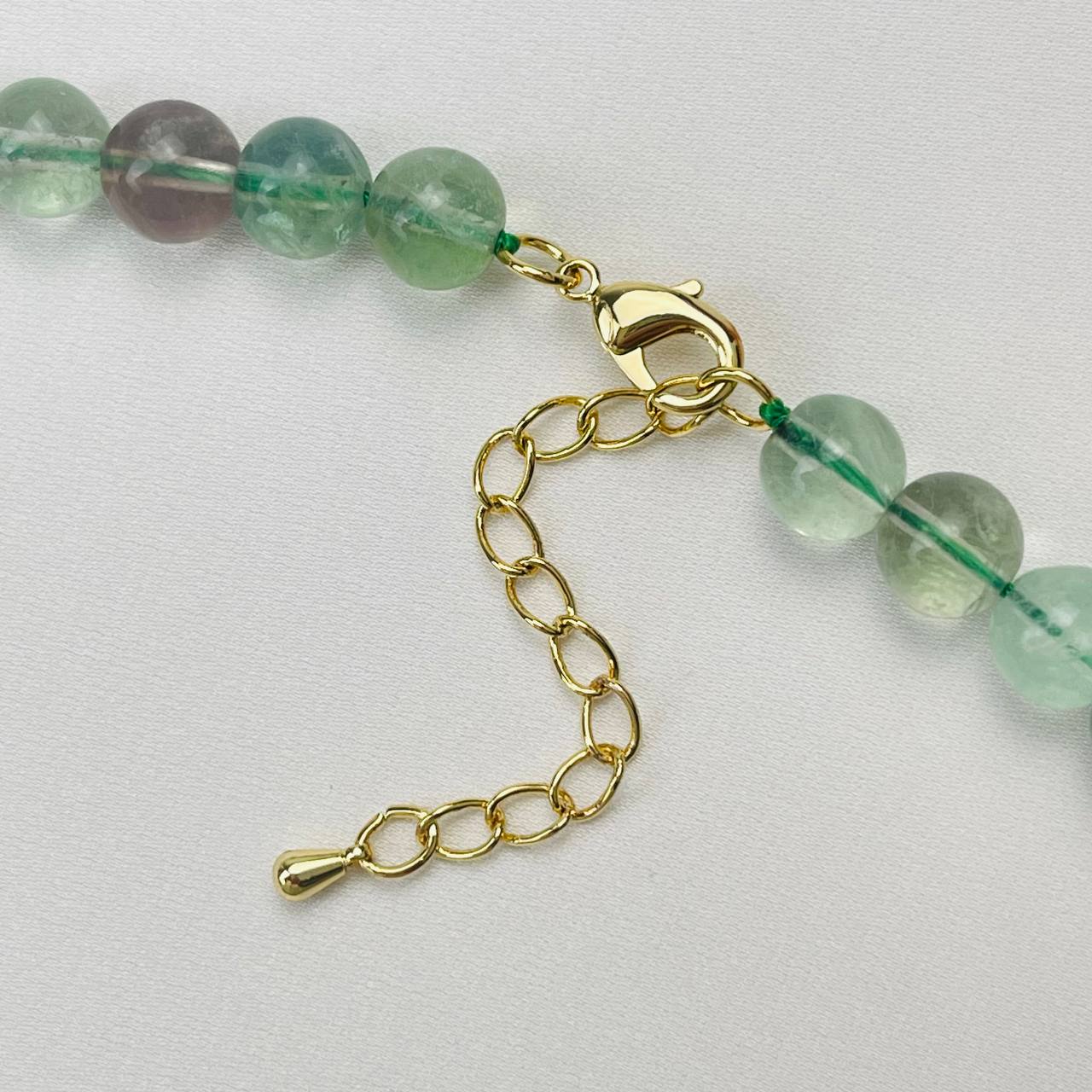 Цвет камня: Миксовый Месторождени..показатье: Китай Камень: Флюорит Покрытие: Золото 14К Диаметр: 8 мм Поверхность: Гладкий Производитель: Радуга Самоцветов (Россия) Тип замка: Карабин с цепочкойе: Китай