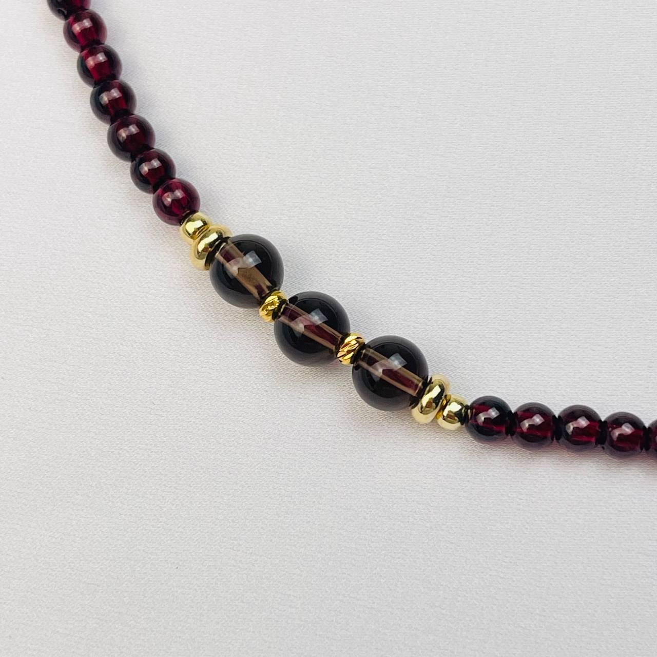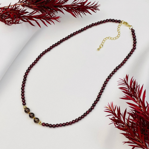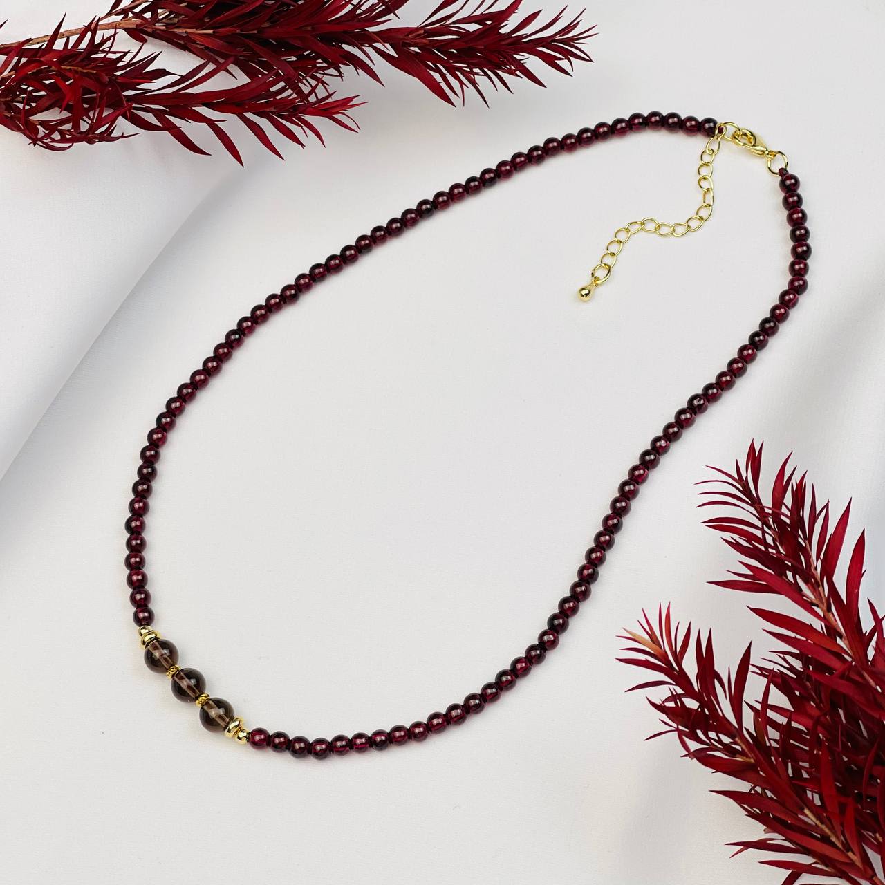 Радуга Самоцветов Бусы из Граната (Пироп) и Раухтопаза