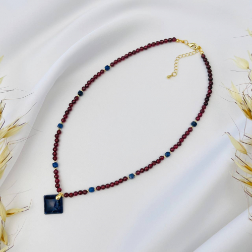 Цвет камня: Миксовый Месторождени..показатье: Индия Камень: Гранат Вставка: Содалит Покрытие: Золото 14К Диаметр: 4 мм Поверхность: Гладкий/Граненый Размер: 20х20 мм Производитель: Радуга Самоцветов (Россия) Тип замка: Карабин с цепочкойе: Индия