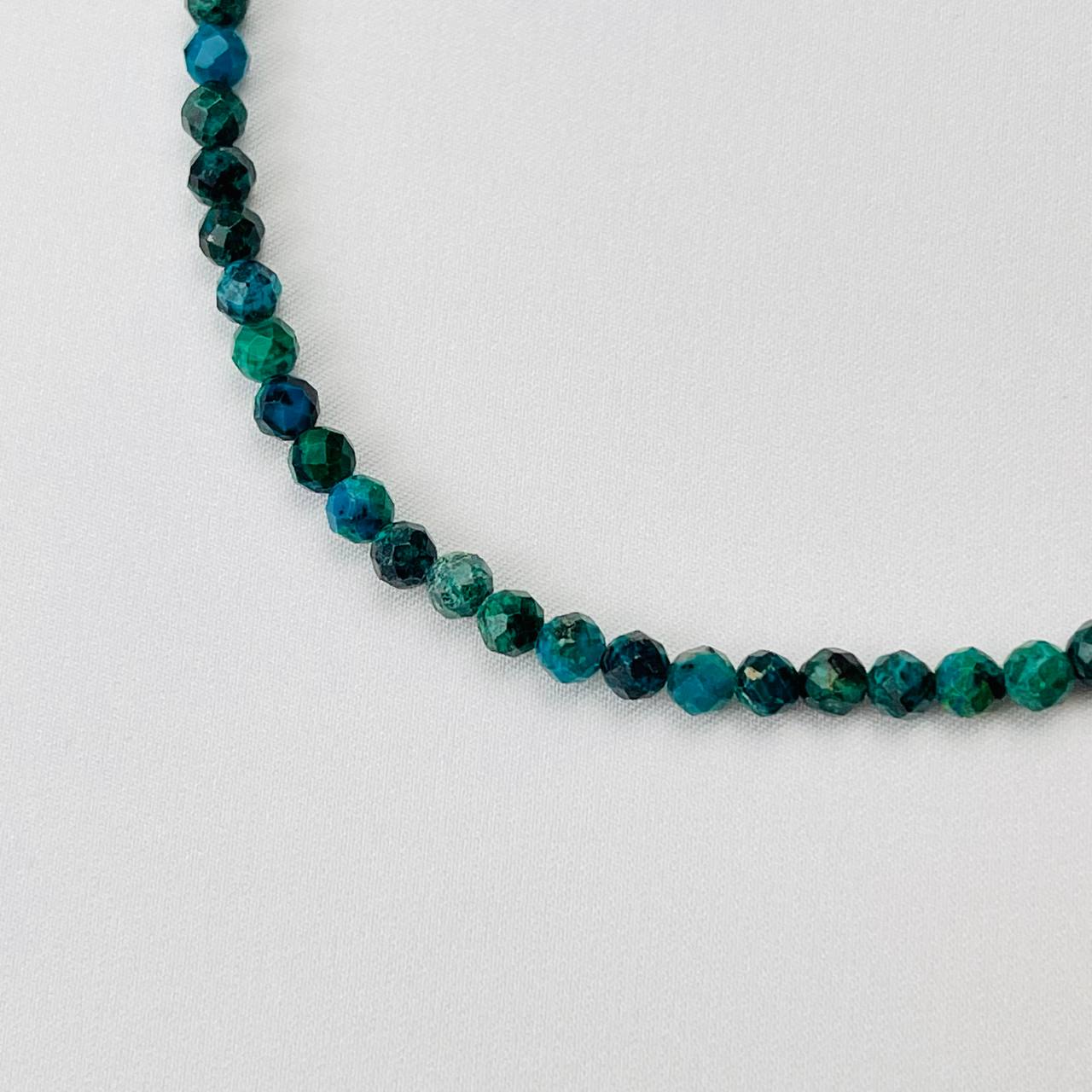 Цвет камня: Миксовый Месторождени..показатье: США Камень: Хризоколла Покрытие: Бижутерный сплав Диаметр: 4 мм Поверхность: Граненый Производитель: Радуга Самоцветов (Россия) Тип замка: Карабин с цепочкойе: США